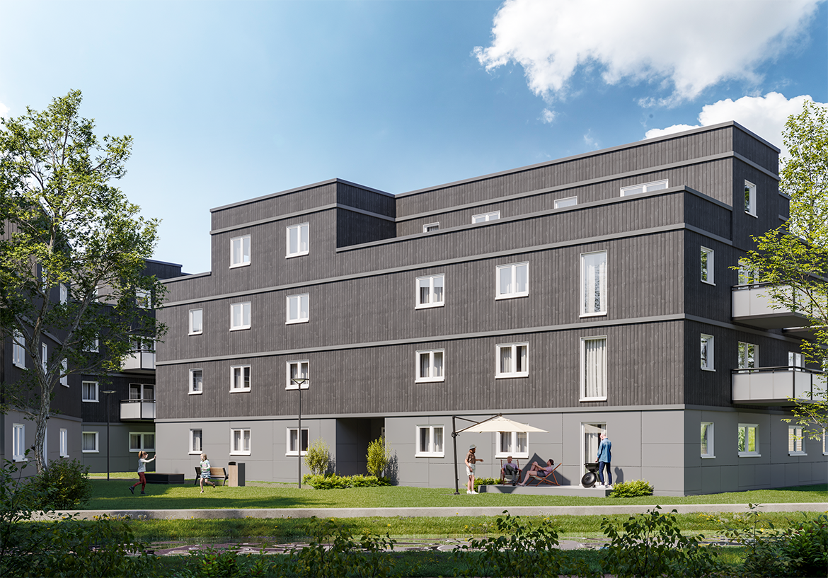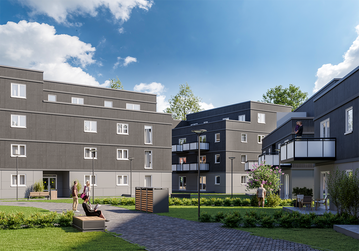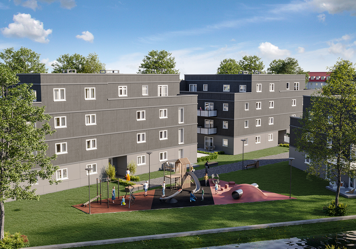 New construction of condominiums - 6 apartment buildings with a total of 72 apartments are being built using climate-friendly solid wood construction with industrially prefabricated wall and ceiling elements (serial production).