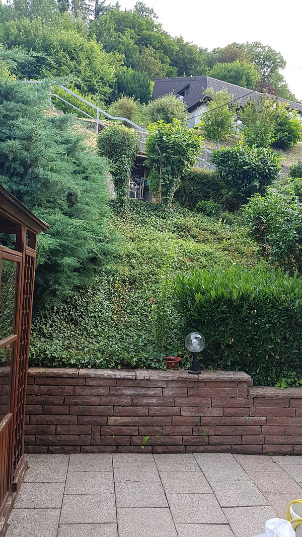 The apartment is located in a quiet area, close to the city center, at the end of a cul-de-sac, and has good access to public transportation. The GRN Clinic in Eberbach is just a few minutes' walk away. Due to its location on a hillside, every window offers a beautiful view of the surrounding nature. This is further enhanced by a large terrace, a very spacious garden, and a pergola in the garden. The apartment building consists of 3 apartments, all occupied by quiet tenants. The property is surrounded by detached single-family homes and multi-family dwellings. The apartment building is situated on a slope.