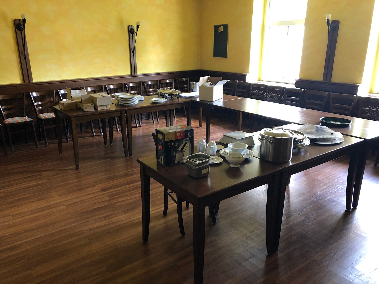 On the ground floor there is the Ratsstube, 2 guest rooms with bar as well as ancillary and service rooms (kitchen etc.). On the 2 upper floors there are 21 hotel rooms, some of which can also be rented out as apartments/flats; corresponding intermediate doors and kitchen connections are provided by the customer. Electrical and equipment with connections in each room for Internet access points