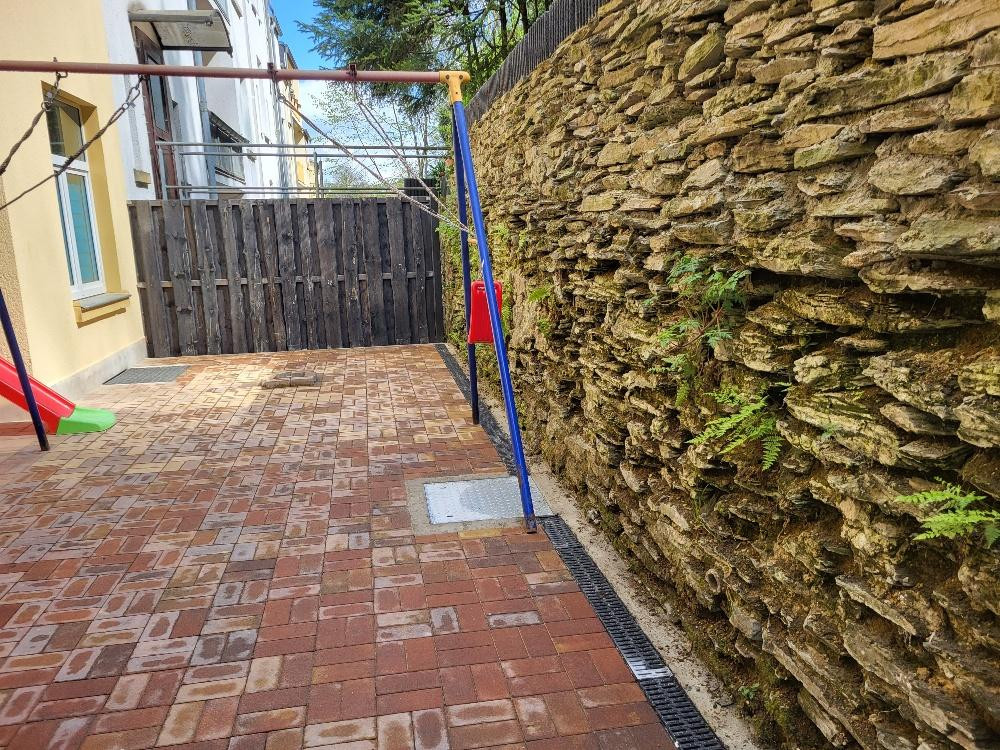 The ground floor apartment has a spacious and newly renovated terrace on a newly renovated natural stone wall and a new staircase leading to the garden above.
