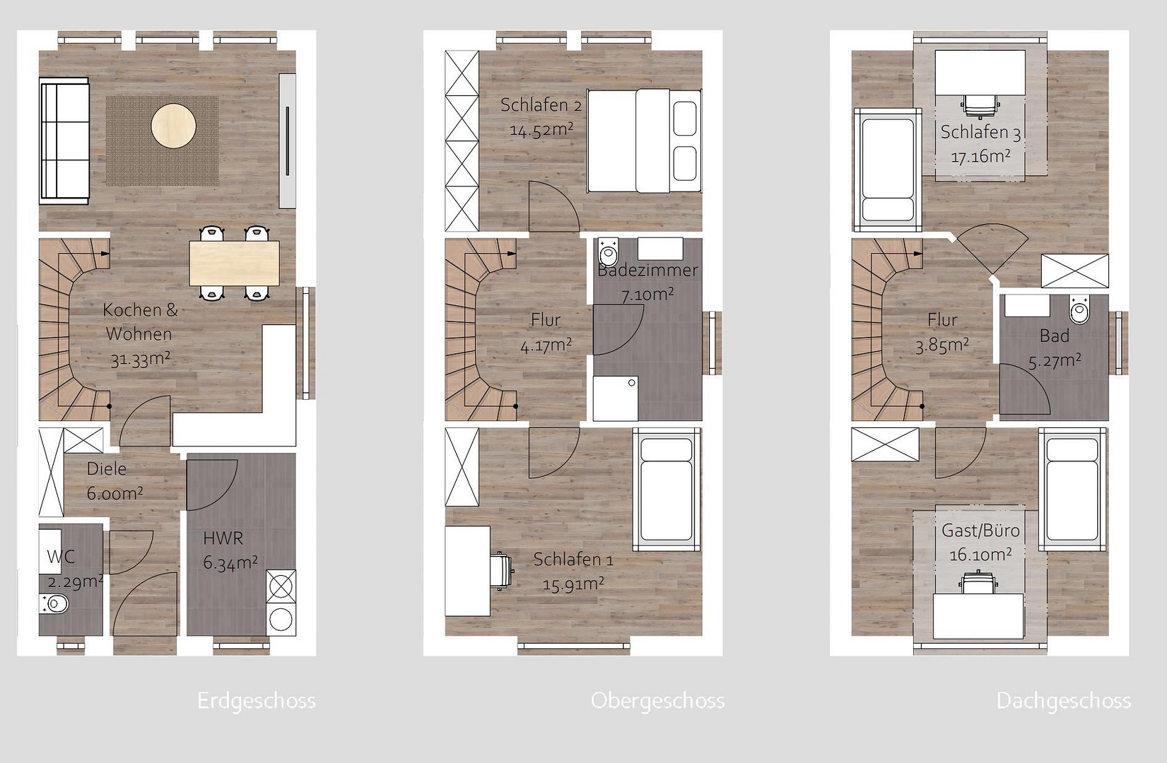It also scores highly in terms of energy efficiency! The in-house air source heat pump and KfW 55 standard represent a high level of energy performance.