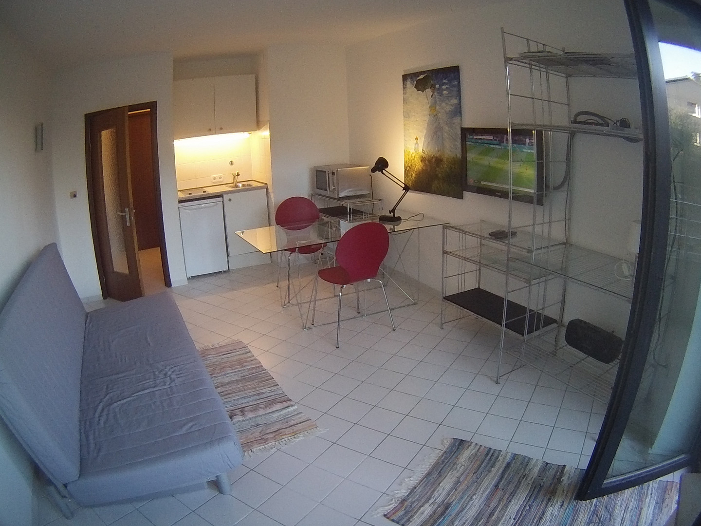 Living Area: Sleeper sofa (2.00m x 1.40m), Balton shelving system (chrome shelves with corresponding shelves, HD+ TV, radio), dining table and 2 chairs, convection oven with microwave, complete set of dishes, decorations. Entrance Hall: Spacious wardrobe with the possibility of storing your own clothes, various storage options. Storage Room: Additional wardrobe. Various items, for example, a vacuum cleaner. The price includes ALL costs, including rent with furniture, heating, hot water, electricity, basic internet connection and cable TV (there is also a small satellite dish with receiver) as well as a parking space in an underground garage, which adds an additional 35.00 euros if used. Also included is access to the swimming pool, sauna, and solarium (for a small fee, payable using a coin machine). Building Energy Certificate: