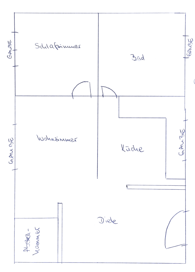 2 room attic apartment in a four party house. In the courtyard there is a nice garden, which can be used in agreement with the neighbors.