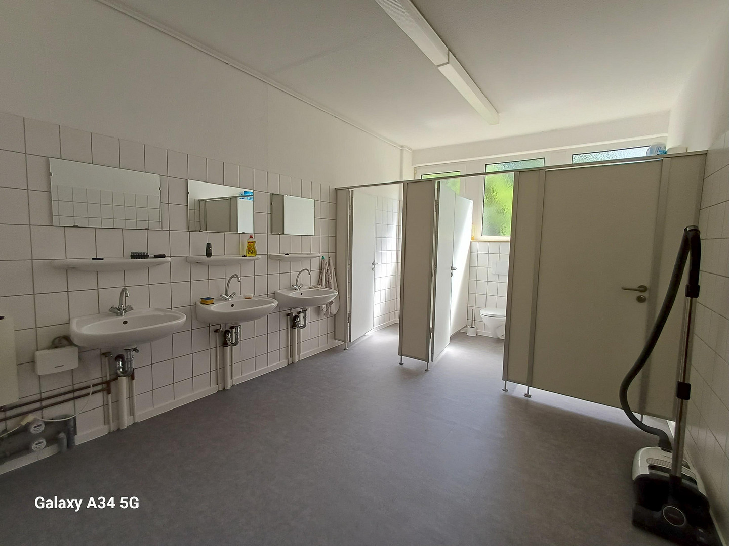1xsanitary room approx. 16.5 sqm, with 3 toilets and 3 washbasins