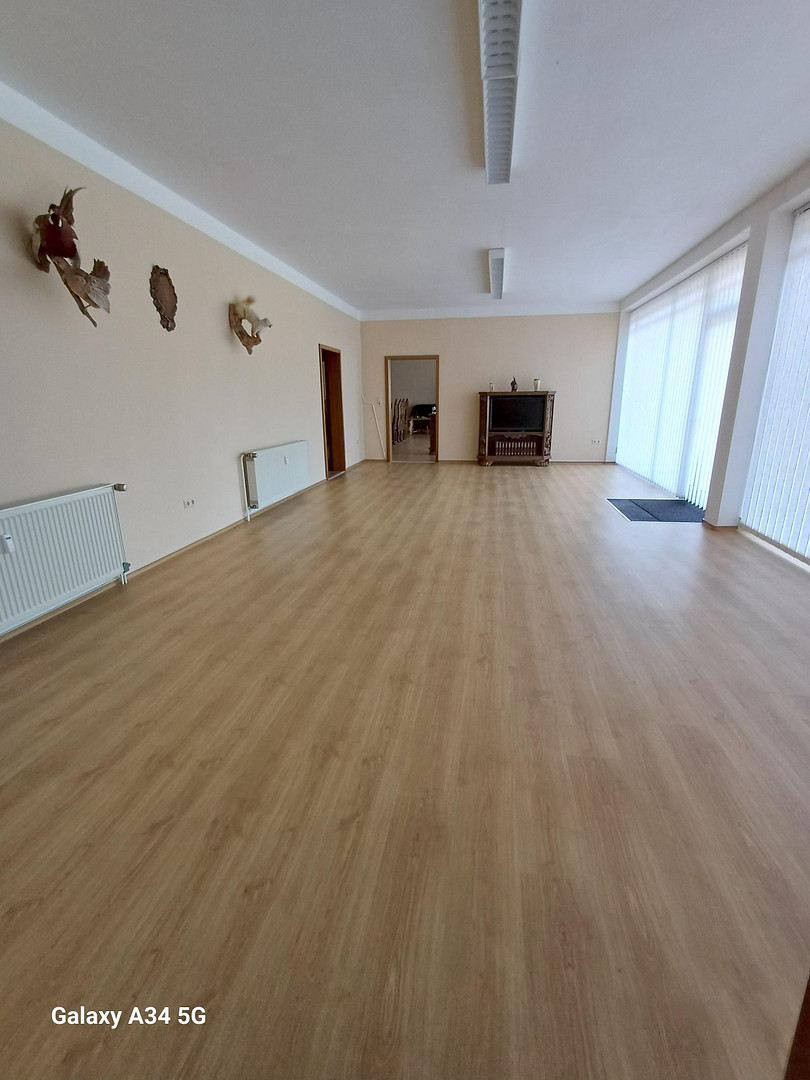 Wartburgstr. 5, 99817 Eisenach (Stedtfeld) – ThüringenThe commercial unit on offer is located on the first floor of a building complex constructed in 1992 and comprises approx. 270 sqm of usable space. On a plot of approx. 1000sqm belonging to the rental property, the future tenant also has approx. 300sqm of open lawn space (NOT INCLUDED IN THE RENT. PRICE: 1.00€/sqm) and approx. 300sqm of paved parking spaces at his disposal. The commercial unit is located on the ground floor and is completely separated from two other rented commercial units (sports physiotherapy studio + toolmaker), which are located at the rear of the building. The usable area consists of 7 rooms:
