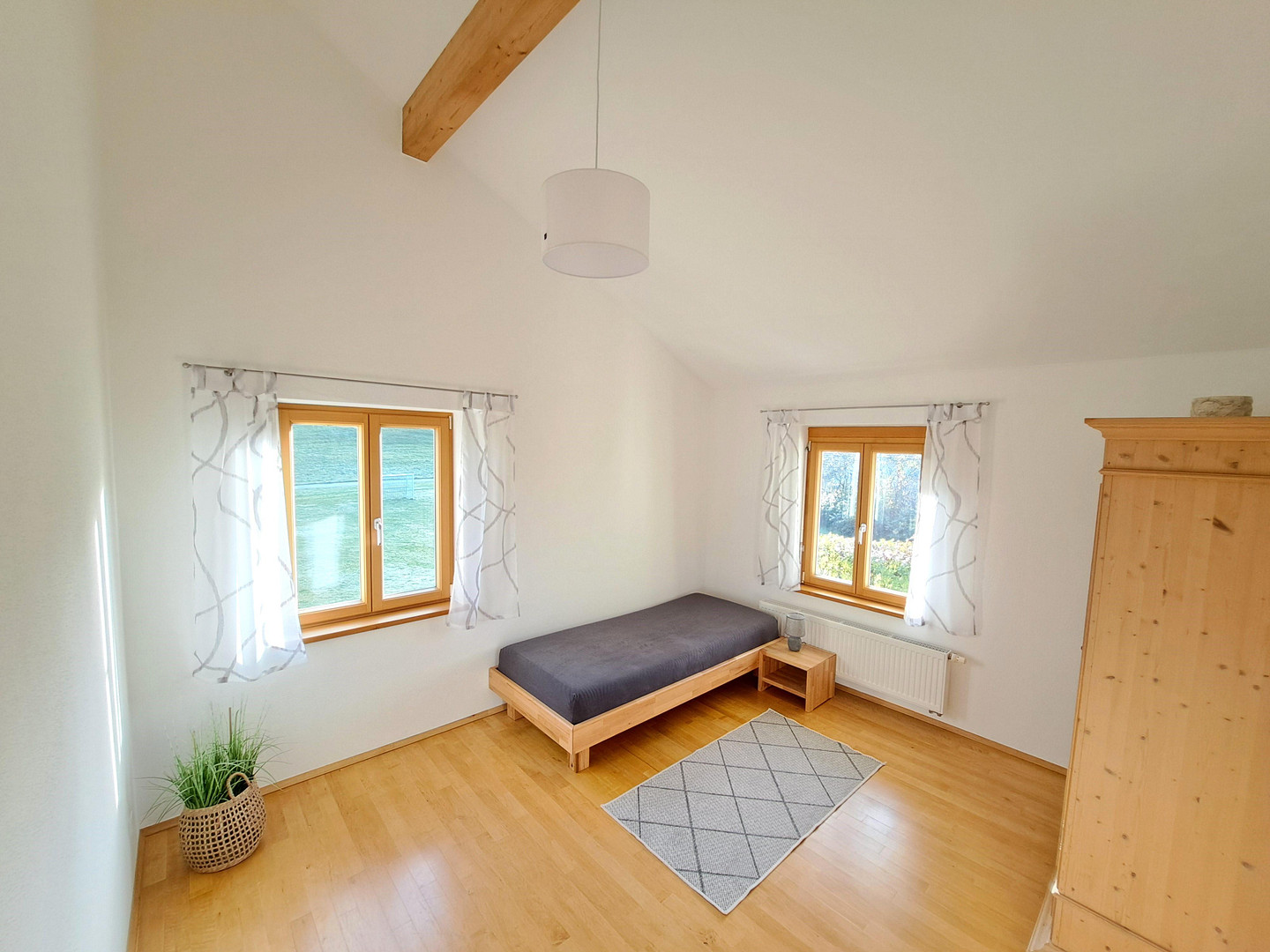 The nursery and kindergarten can be reached quickly via a pedestrian path without car traffic. There is also an elementary school, a bank, a village store and a bakery within walking distance, as well as two bus stops with good connections via the Kempten city bus.