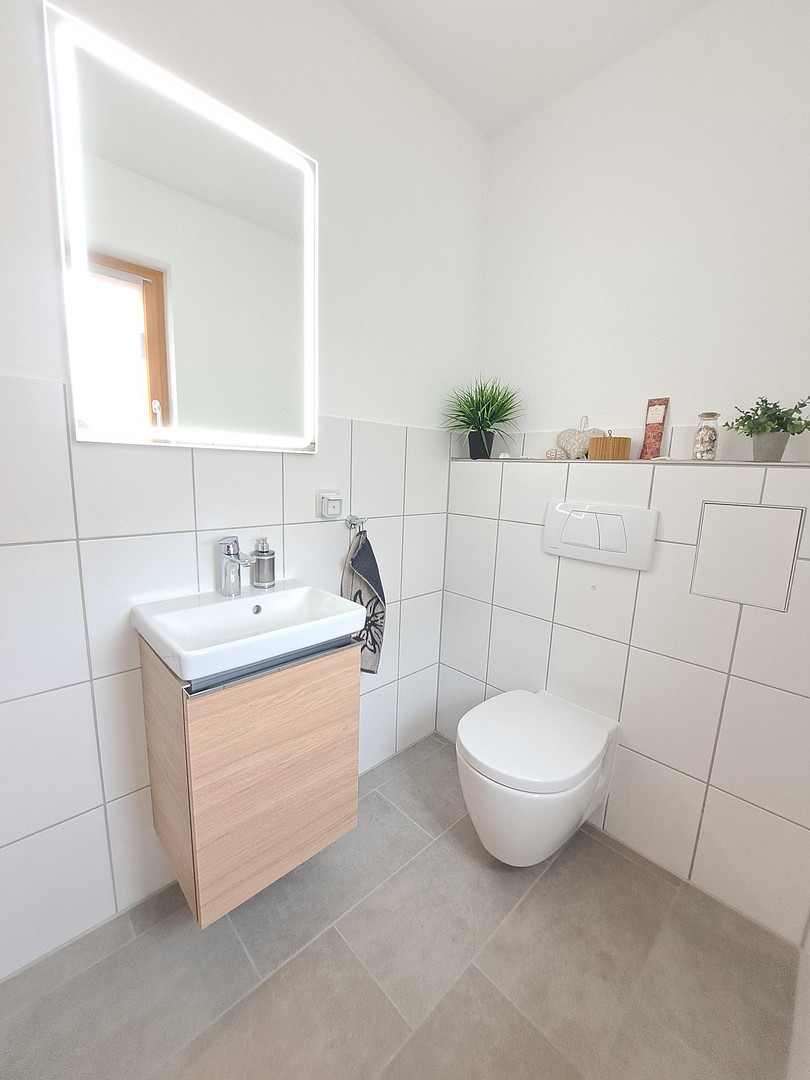 On the ground floor is the entrance area with WC and the staircase with landing staircase. The kitchen with high-quality electrical appliances was modernized in 2021.
