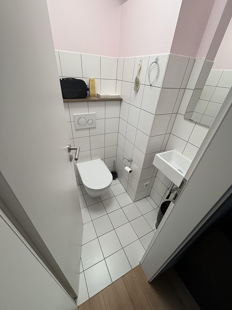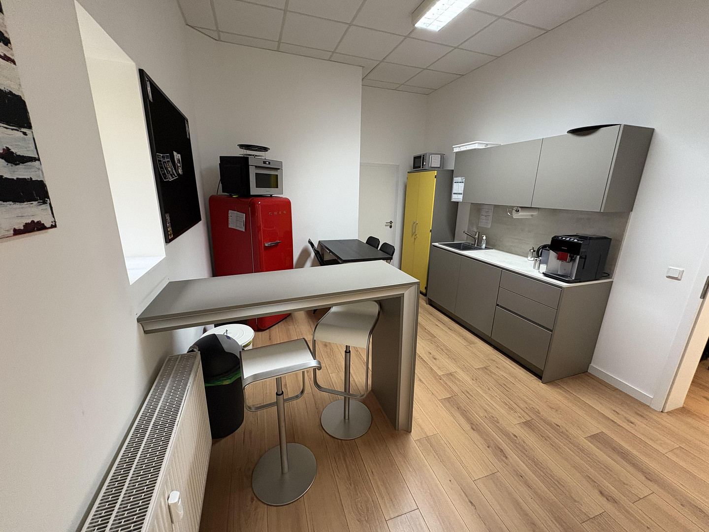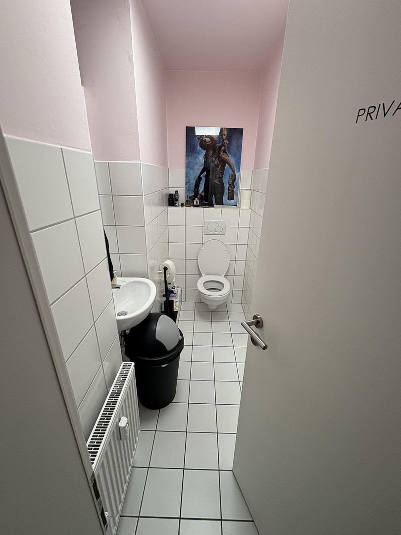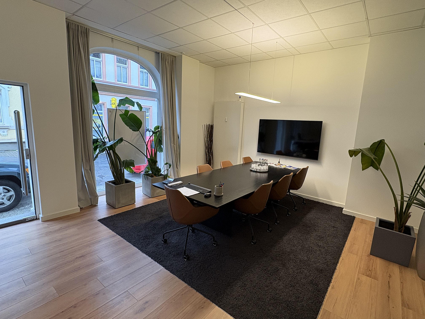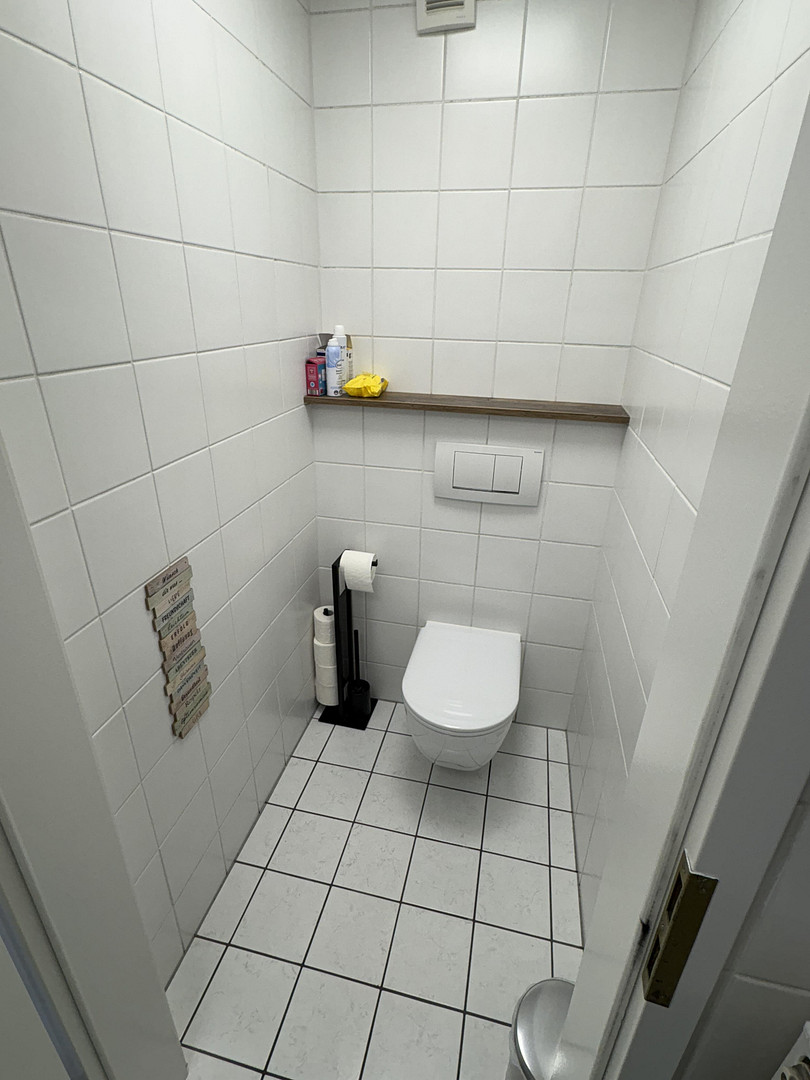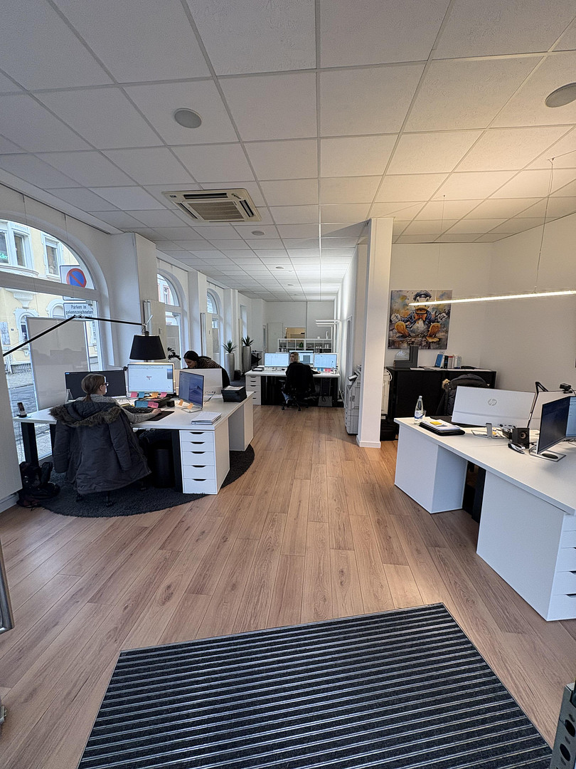 The sales area was completely refurbished in 2007. The floor is covered with industrial PVC and carpeting. The walls are clad with GK panels. The ceiling is suspended as an Odenwald ceiling. Air conditioning is available. The WC facilities are tiled. The electrical installation, all doors, windows and radiators were renewed on the sales floor in 2007.