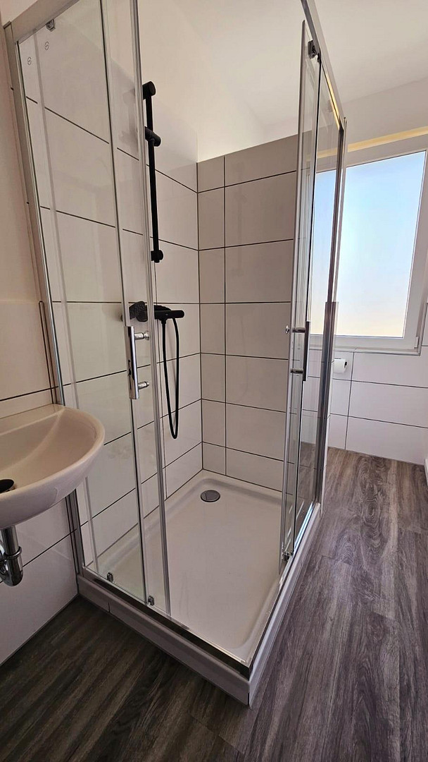 Tilsiter Straße 3, 42579 Heiligenhaus – Nordrhein-WestfalenHere, I am offering a completely renovated 2-room apartment in the Nonnenbruch district. Everything here has been newly done. New electrical wiring, new bathroom, new Schüco windows, freshly painted, new flooring, infrared heating, etc.