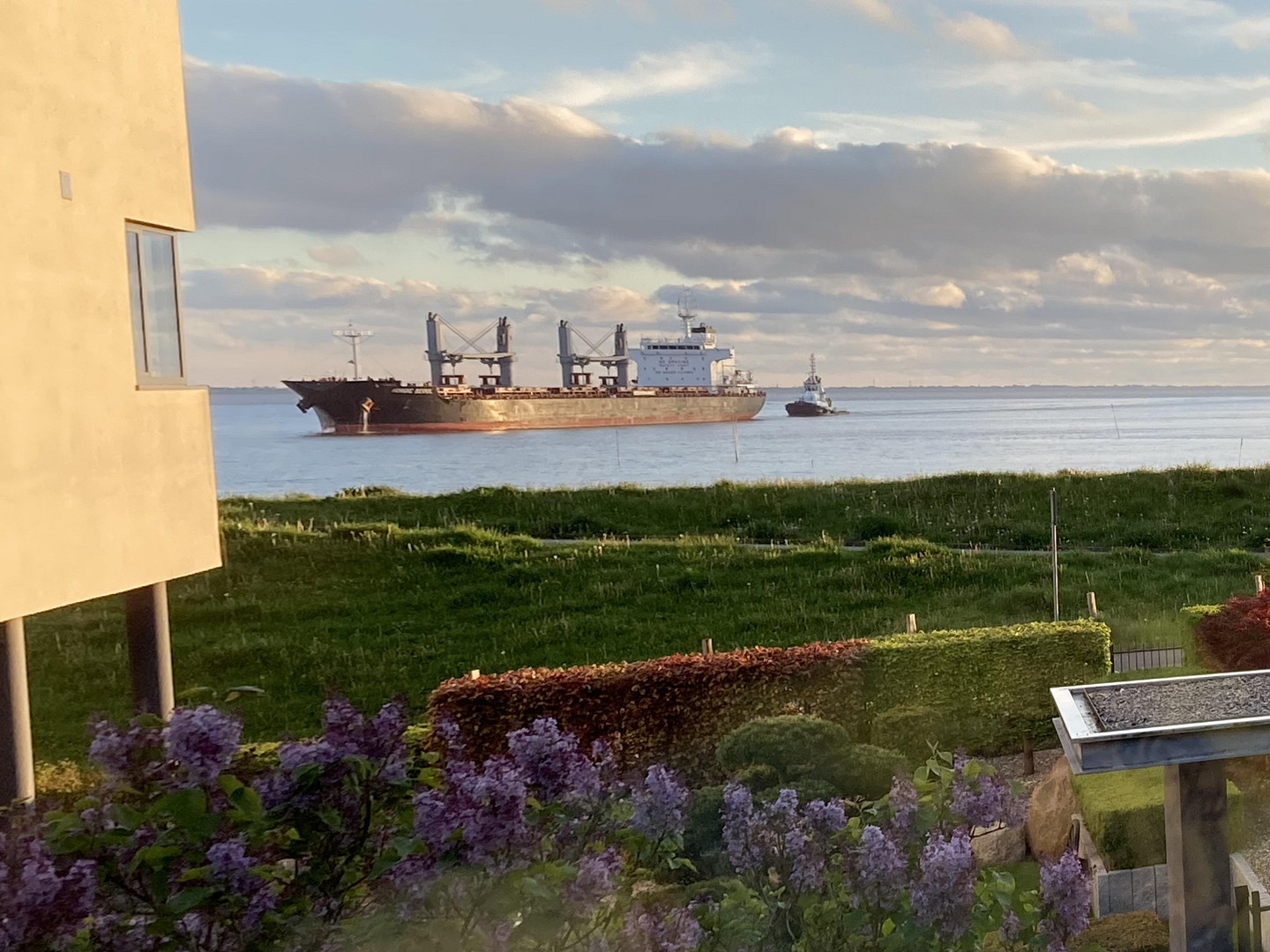 With its modern room layout, the house offers four bedrooms, a spacious bathroom, utility room and guest WC on the first floor. On the upper floor, the floor plan expands into an open-plan living and dining room with large, floor-to-ceiling windows, a separate kitchen and a further WC. The generous view of the Elbe and the entrance to the locks of the Kiel Canal from the entire living area is an absolute highlight, while the spacious south-west-facing terrace with a view into the distance invites you to linger and watch the cargo and cruise ships.