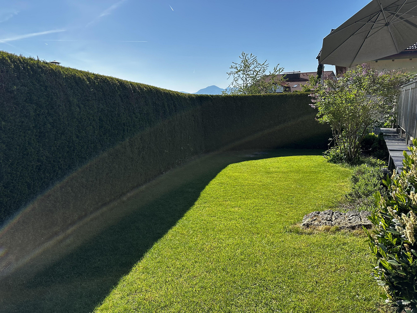Surrounded by a hedge and virtually secluded, the property is separated from the neighboring meadow with adjacent nature reserve by a side road to the lake and is just a short walk from Lake Chiemsee. Here you can enjoy the peace and beauty of nature to the full.