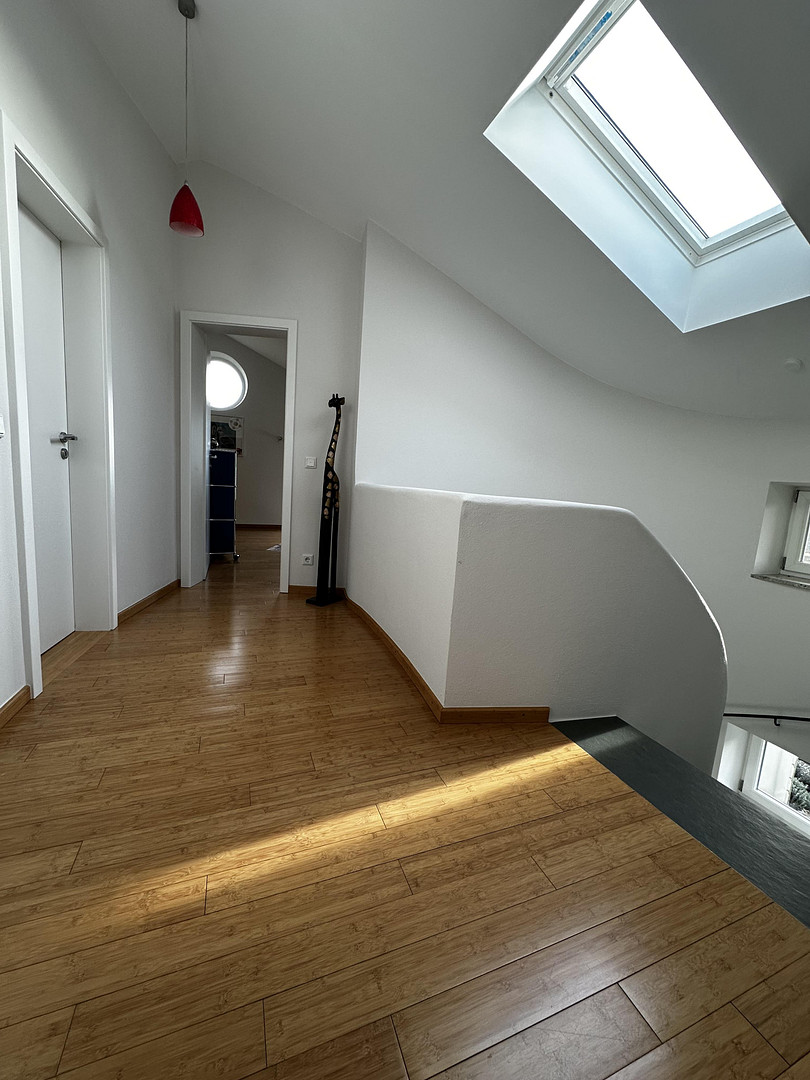 A luxurious bedroom with a relaxation room, dressing room and en suite bathroom with separate WC awaits you on the upper floor. An additional multifunctional room offers a variety of uses, whether as an office or children's room.