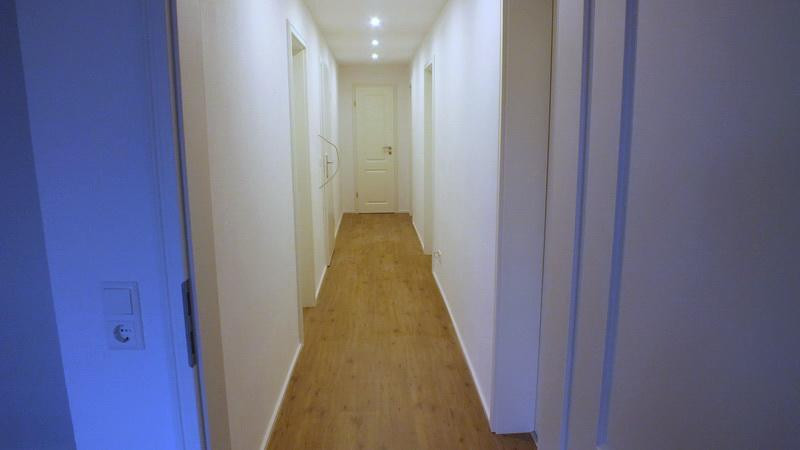 The apartment consists of a spacious living room with access to the balcony. From here you have a wonderful view of the park and the city. Immediately to the right is the bedroom with the same view. From the bedroom you look into the long, bright hallway. There is another room directly adjacent to the living room. This can be used as a children's room or as an office. The hallway ends with the kitchen (including fitted kitchen) and the storage room. The living room, bedroom and children's room have their own TV connection. Therefore suitable as a shared flat or as a vacation apartment.