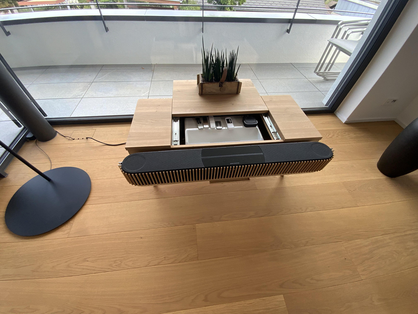 - Electric screen for a home cinema atmosphere with discreetly concealed short-throw projector (optional)