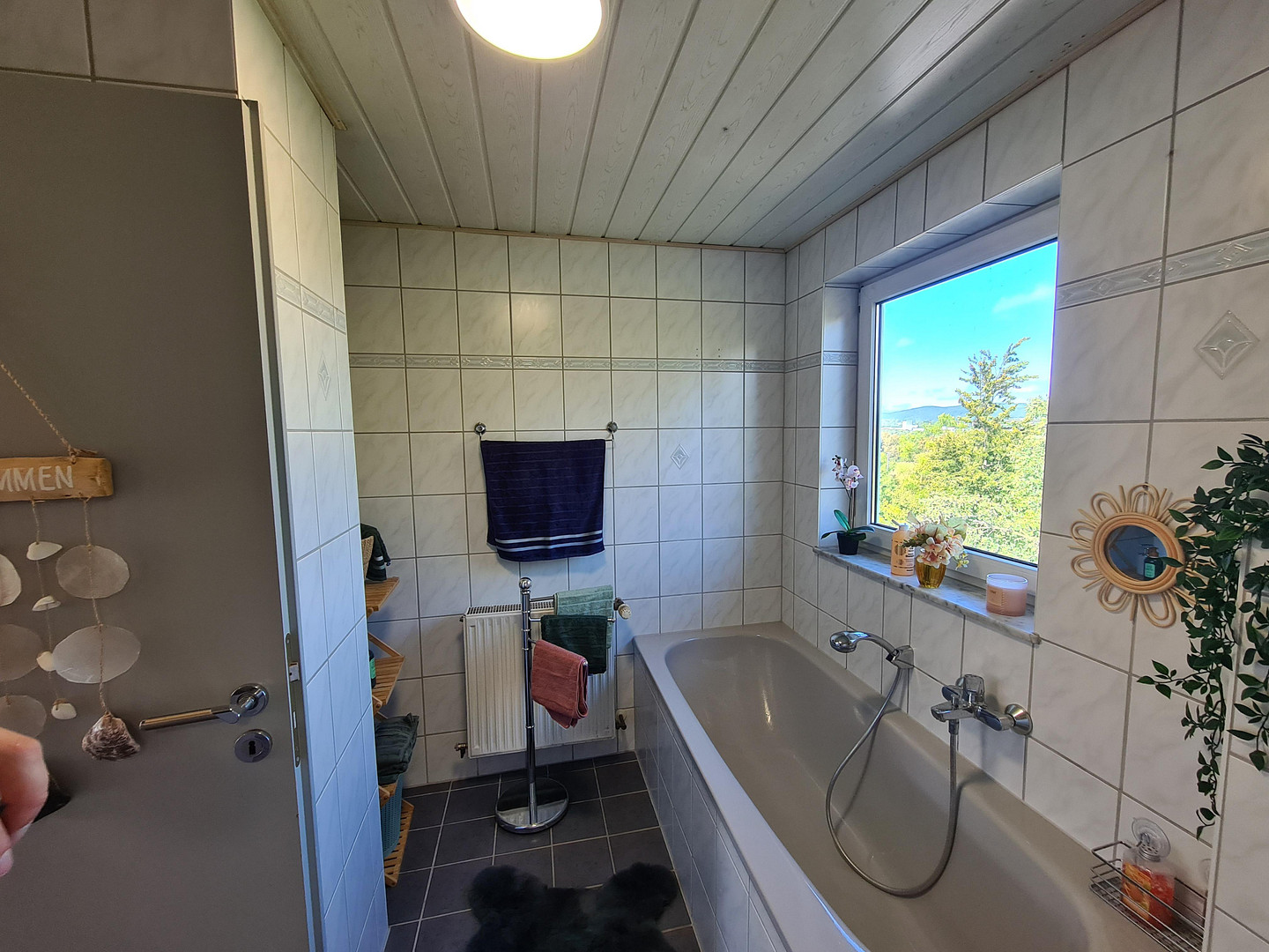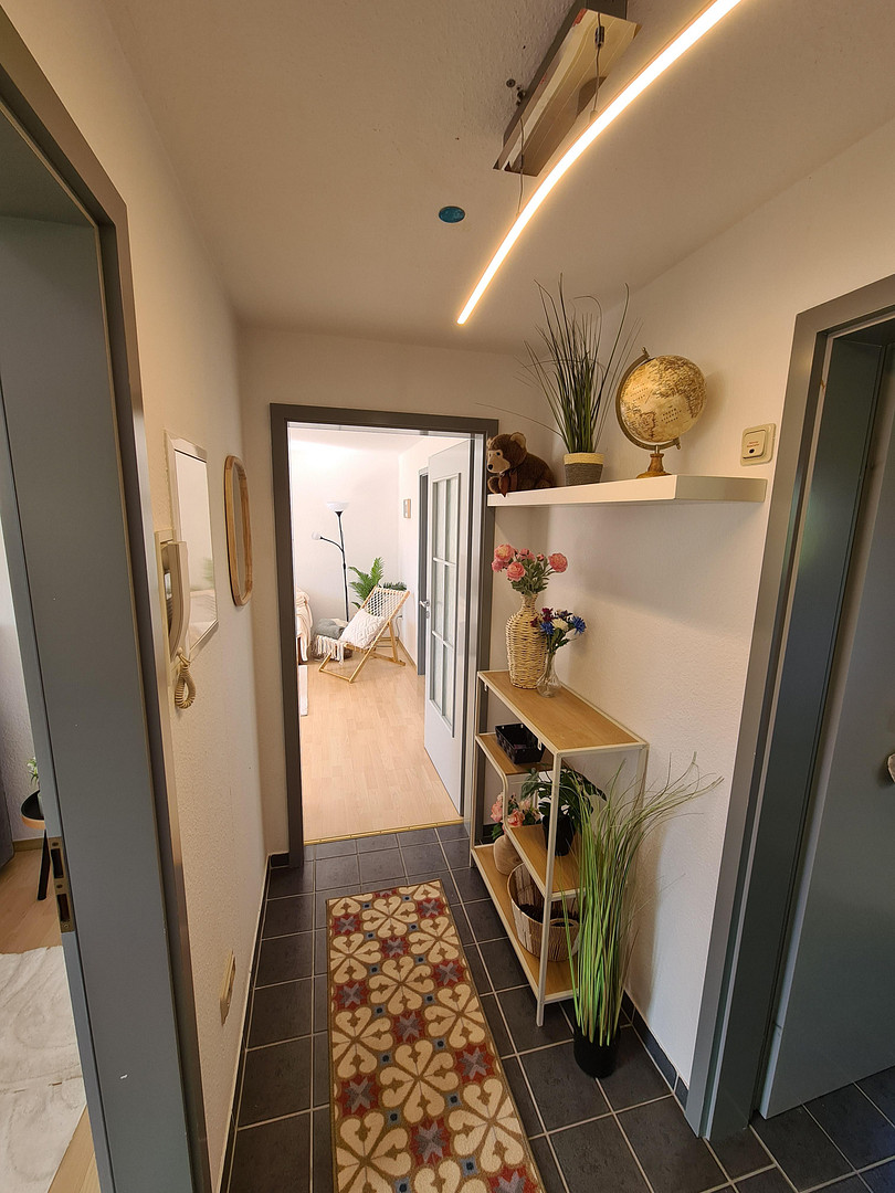 The separate fitted kitchen is included in the rent and offers plenty of storage space as well as all the important electrical appliances. The daylight bathroom is brightly tiled and equipped with a bathtub.