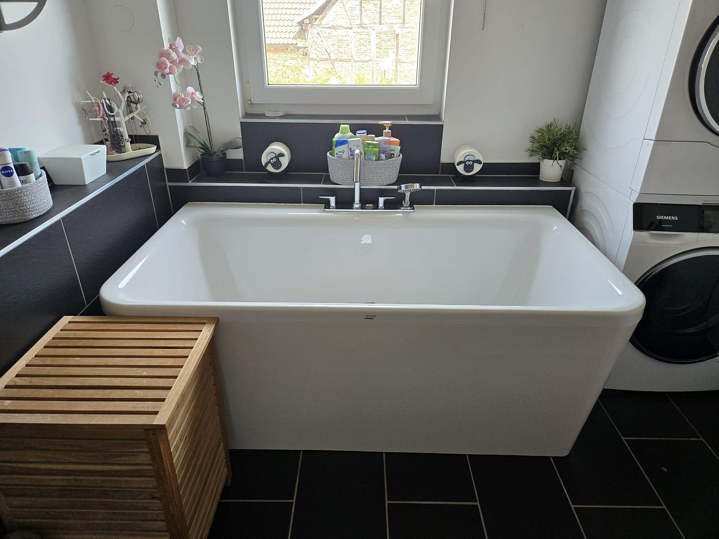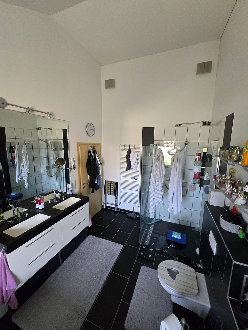 Bathroom with floor-level shower, 9000 Euro bathtub from Grohe Axor, all fittings from Hans Grohe