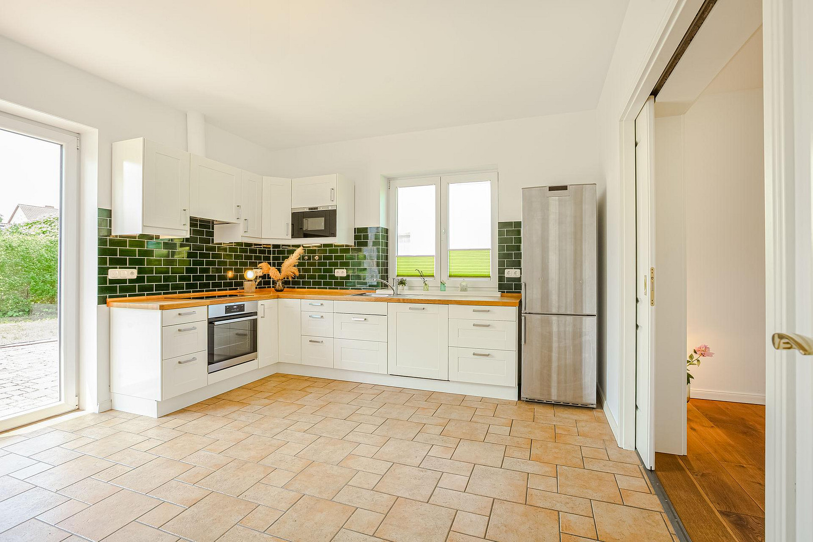 spacious kitchen, which adjoins the southwest-facing terrace. From the kitchen