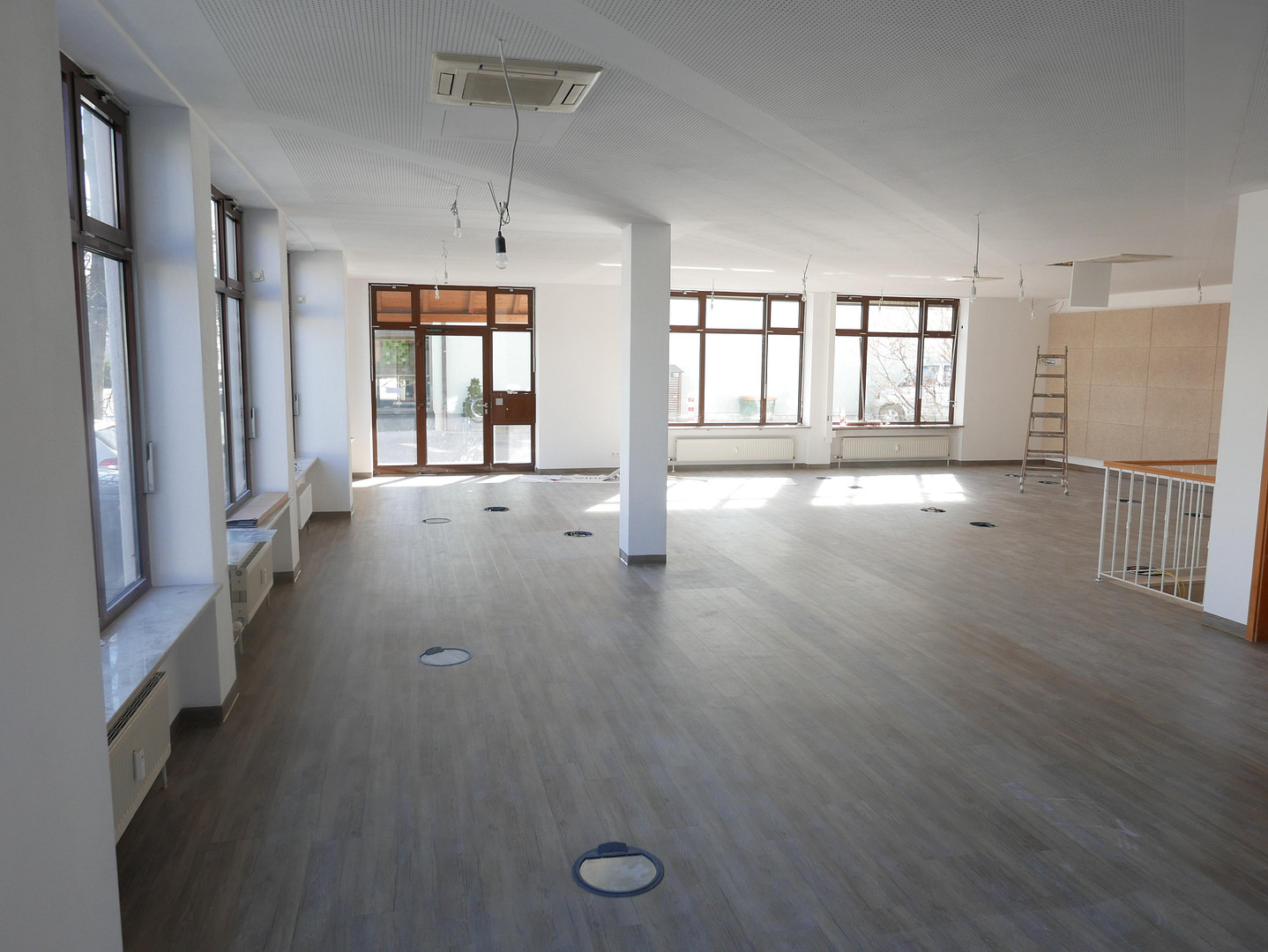 The space on the ground floor currently has no partition walls and can therefore be divided up flexibly (also with partition walls). There are two separate WCs. Air conditioning is available. The rooms have ideal room acoustics.
