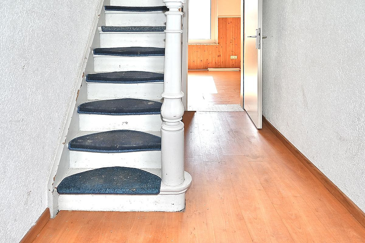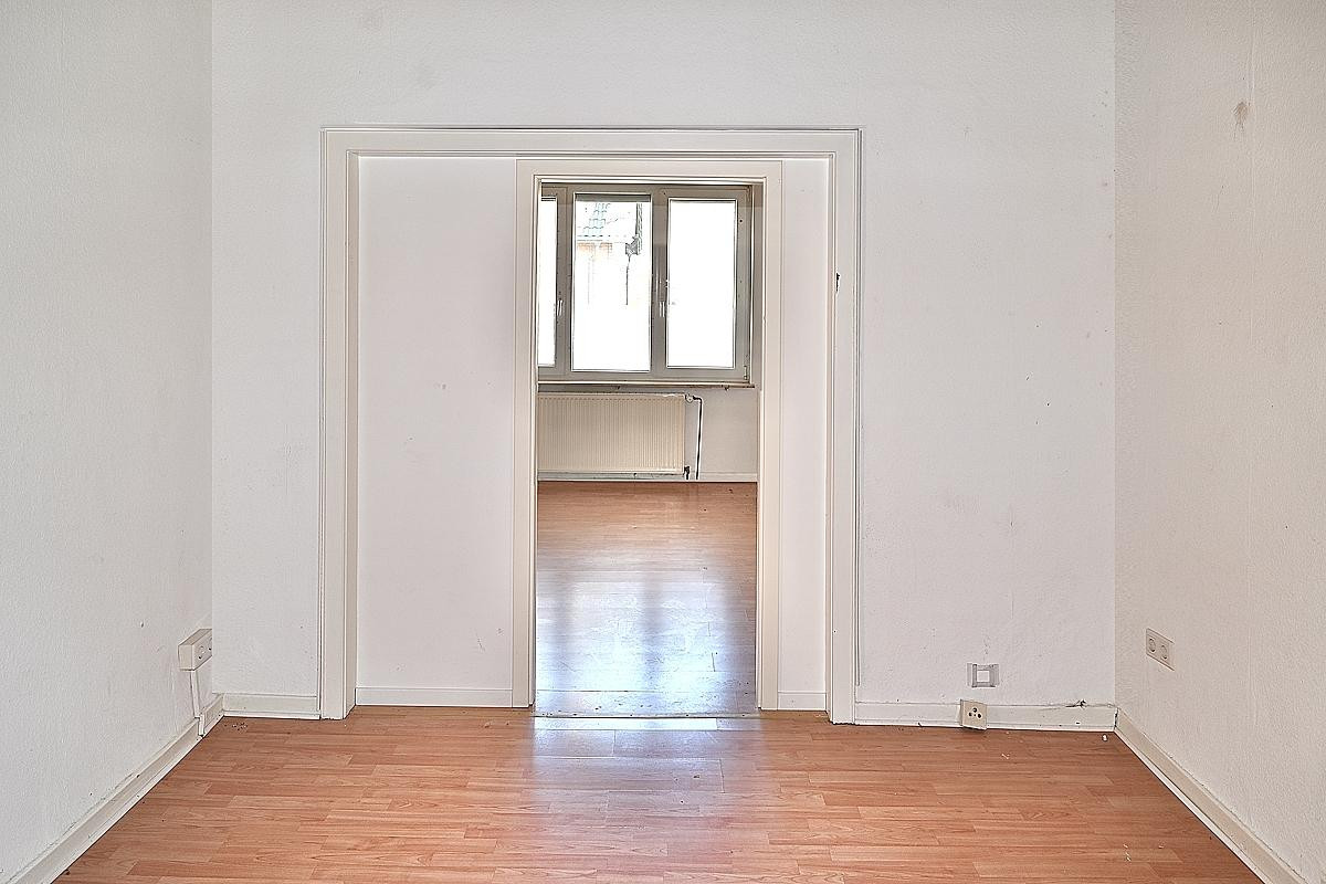 The larger apartment of approx. 63m2 on the first floor of the three-family house on offer here offers a living room, a bedroom, a kitchen of approx. 12m2, an office, a shower room, a hallway and a porch.