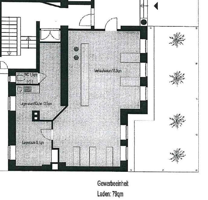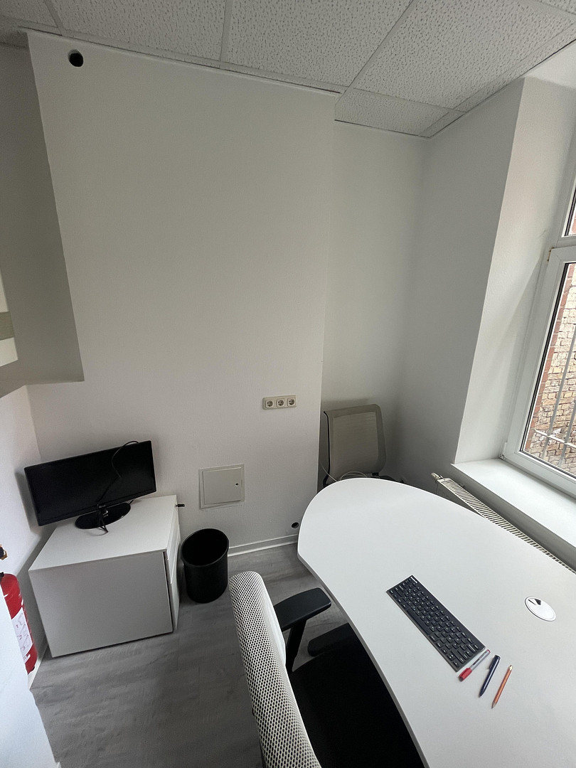 It consists of a sales area with shop windows facing Thälmannstrasse and separate office/storage rooms as well as a kitchen and WC.
