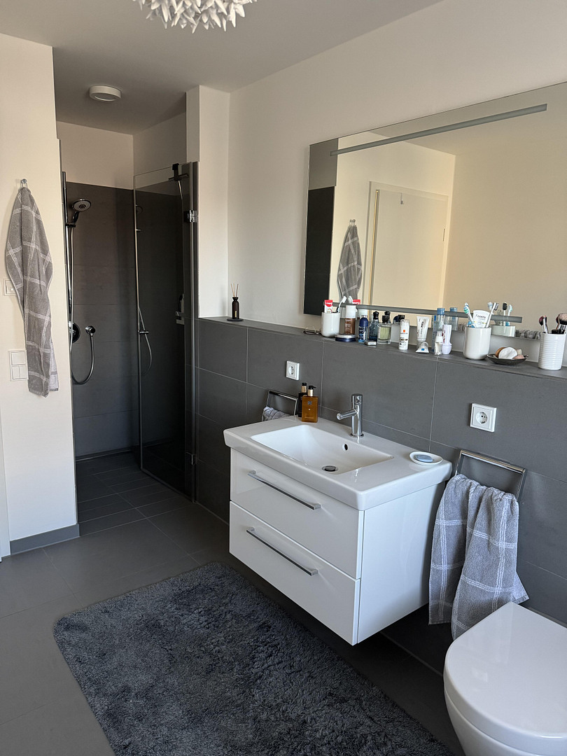 * Anthracite-colored tiles in bathrooms and HWR