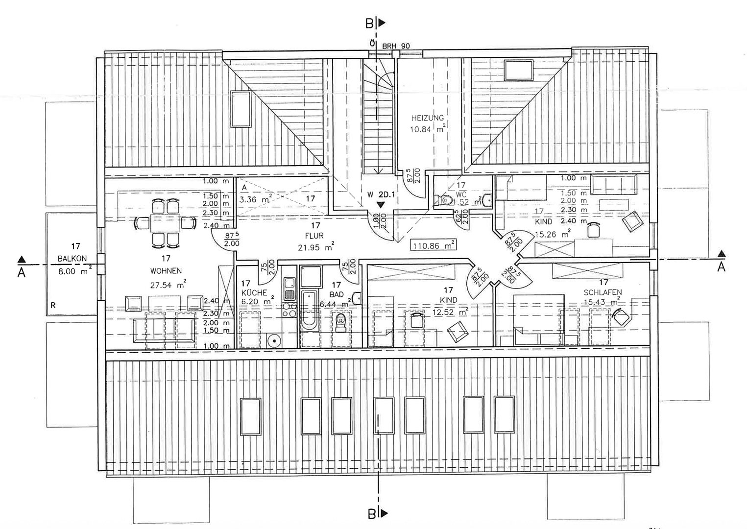 -Penthouse/attic floor, very bright, generous window areas, balcony with far-reaching views