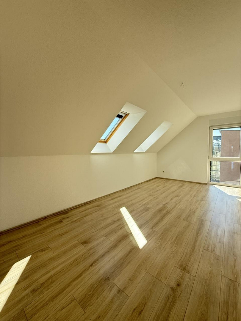 14974 Ludwigsfelde – BrandenburgHigh up, bright and spacious: a well-kept 4-room penthouse apartment with approx. 111 m² of living space is available to rent on the top floor of a residential and commercial building, accessed via the staircase. The heart of the apartment is the large living/dining area with two floor-to-ceiling balcony doors - plenty of light, far-reaching views and sun into the evening. Three further rooms offer space for a bedroom, children's room and/or home office. The bathroom is comfortably equipped with a bathtub and separate shower; there is also a guest WC. All rooms lead directly off the hallway, which is ideal for a checkroom. You can expect a friendly mix of easy-care floor coverings (laminate in the living rooms and tiles in the kitchen and bathroom). The many roof windows provide daylight in all rooms. The separate kitchen with a new fitted kitchen is included in the contract, as are a parking space and a spare cellar room for baby carriages, bicycles and the like. The letting is based on a long-term index-linked rental agreement, which is based on the development of the statutory consumer price index.