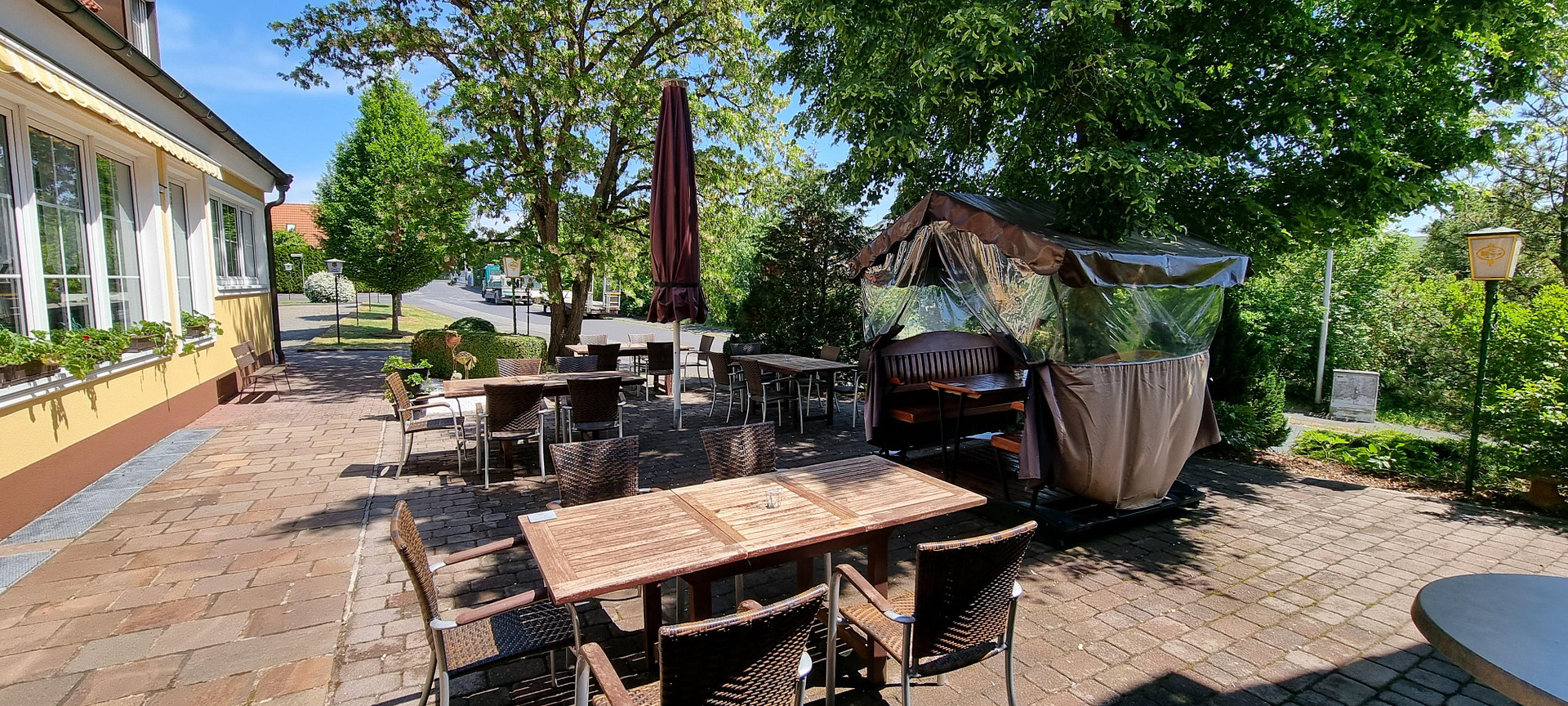 Zum weißen Kreuz 20, 97723 Oberthulba – BayernThis spacious property on a 4,041 m² plot offers 1,691 m² of living and usable space, currently divided into approx. 1134 m² for 28 guest rooms, including 3 fully equipped vacation apartments (2 and 3-room apartments) and approx. 557 m² for the complete gastronomy incl. conference rooms and storage, as well as laundry room, sauna and toilets. Parts of this usable area can also be converted into living space. The solid building fabric (built in 1990) and the ongoing modernization make the property immediately usable and expandable.