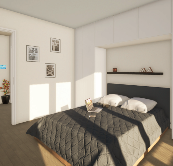 - Open-plan kitchen area with access to the living area and balcony/terrace.