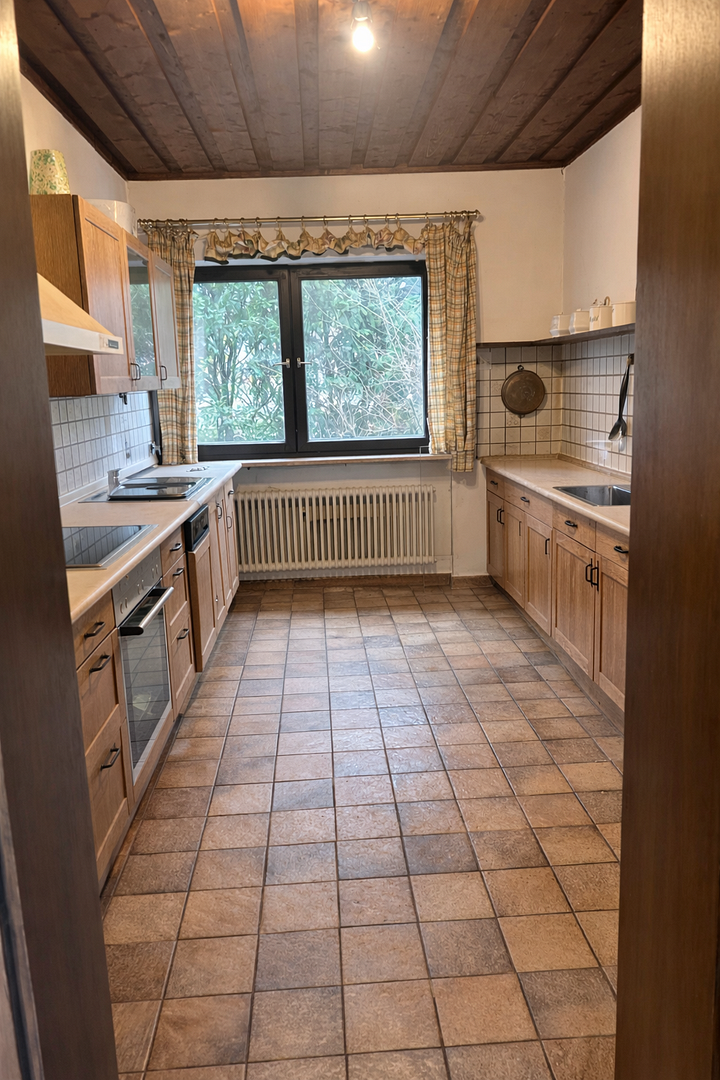 What should be done: the windows and floors as well as painting work. The Buderus condensing oil heating is up to date. The roof has also already been renewed and insulated. There is plenty of potential here for individual design or further project development. We have already had the garden reworked so that it can be rebuilt immediately. We have also had the development plan amended accordingly.