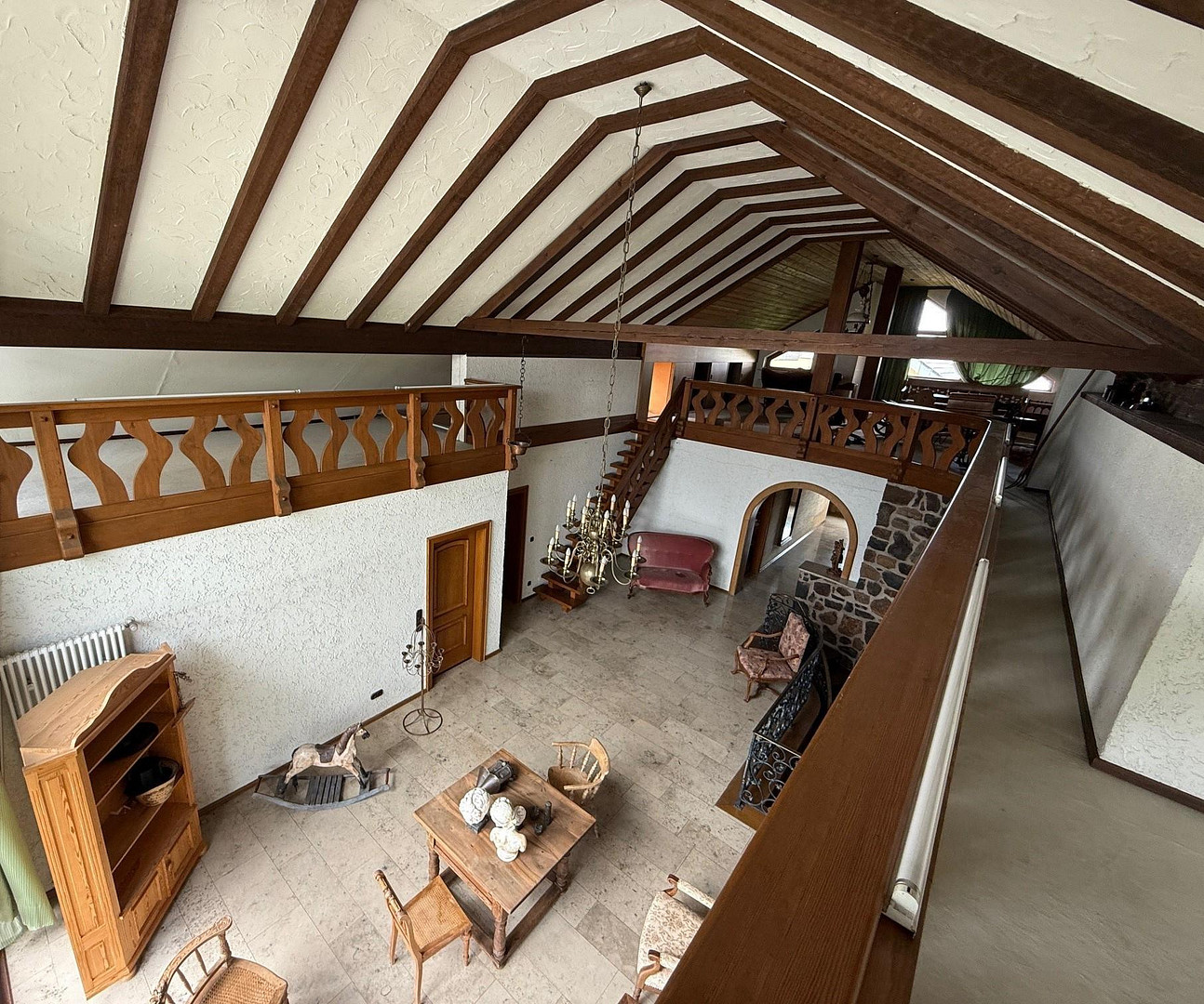 The top floor offers another highlight - the imposing hall hall with the character of a nave. On this level there are: master bedroom, guest WC, master bathroom with bath, shower, 2 washbasins, WC and bidet as well as some built-in cupboards, 2 children's/guest bedrooms with balcony access and a further children's/guest bedroom.