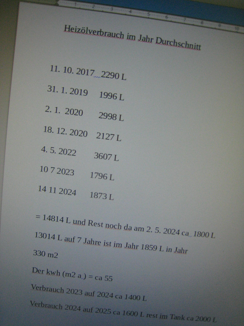 The heating oil consumption is approx. 1500-2000 L per year with hot water.