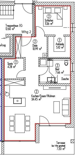The apartment has barrier-free access and is equipped with a high-quality fitted kitchen.