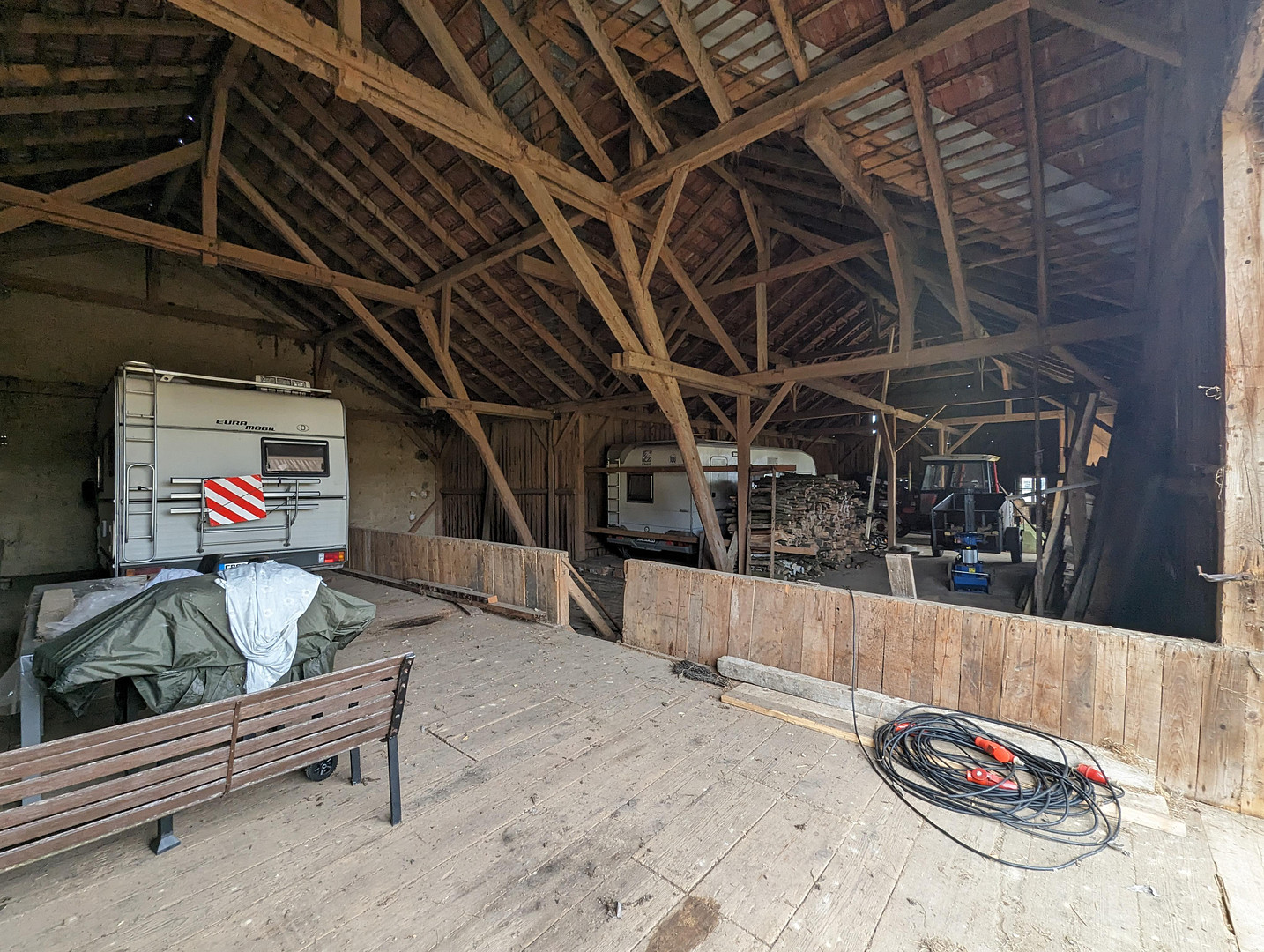 The existing plot covers approx. 2,081 m² and already offers plenty of open space. If desired, it is possible to extend the plot area, creating additional scope for design, for example for garden areas, animal husbandry or private outdoor areas.