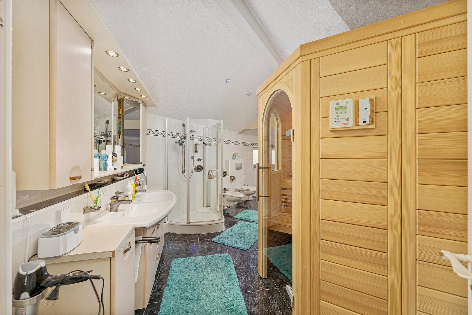 Bright, spacious bedrooms and children's rooms await you on the upper floor, offering plenty of space for rest, play and personal retreats. A stylish bathroom and a further bathroom with integrated wellness area invite you to relax and feel good. Two sunny balconies extend the living space outside and create a pleasant ambience for hours of sunshine.