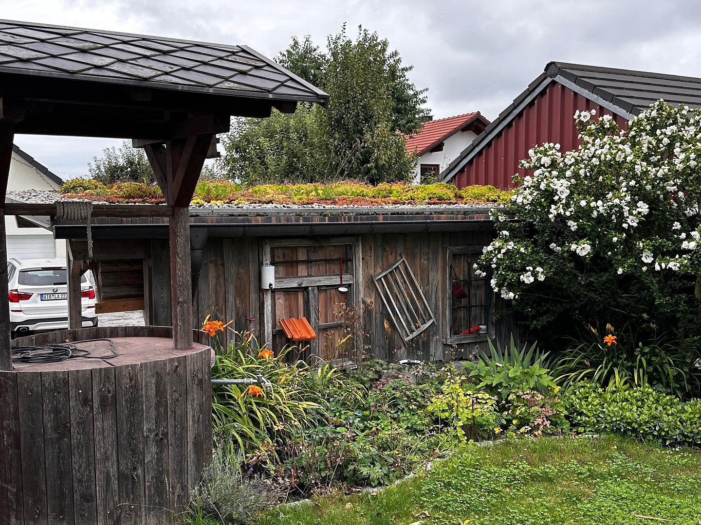 The lovingly landscaped garden is a true paradise. It impresses with a large pool and a very well-kept outdoor area and many trees that create a private and relaxing atmosphere. A large rainwater cistern ensures sustainable and cost-saving irrigation. The glass-covered terrace right next to the house is the perfect place to enjoy the outdoors all year round - protected from wind and weather. A large garden shed also offers additional storage space and a variety of uses.