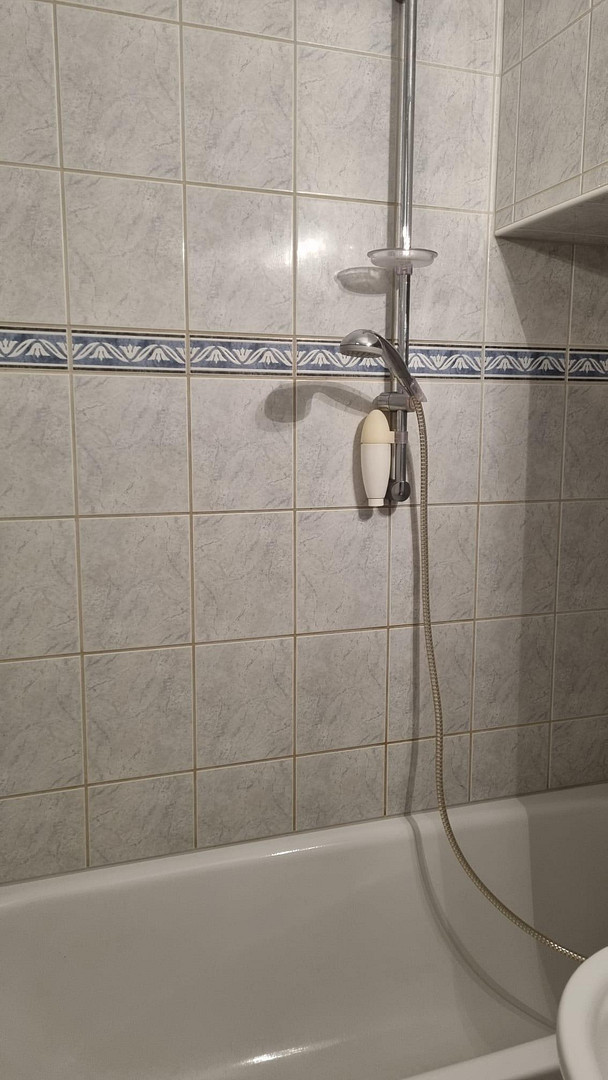 The interior bathroom has a shower tray, a washbasin and a washing machine connection. There is also a separate guest WC with light-colored tiles. A practical storage room provides additional storage space.