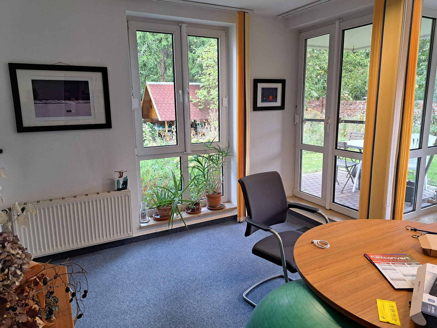 The office space is located at the rear of the property and is therefore very quiet and away from traffic. The existing terrace and the special right of use of a garden area offer sufficient space for relaxation during work breaks.