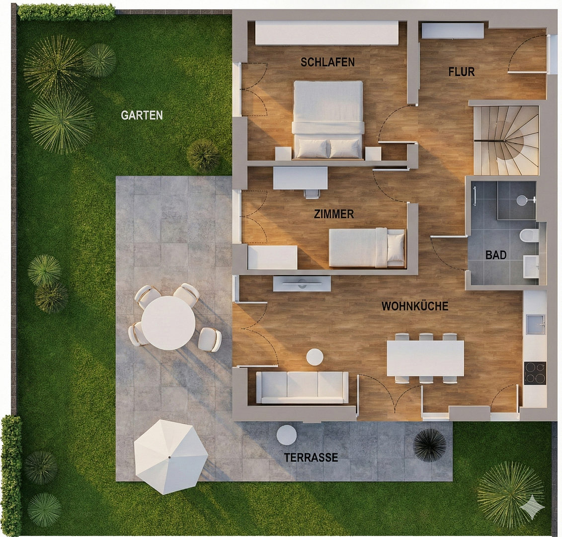 83278 Traunstein – BayernExclusive 4-room maisonette with private garden (KfW 40+) in Traunstein.