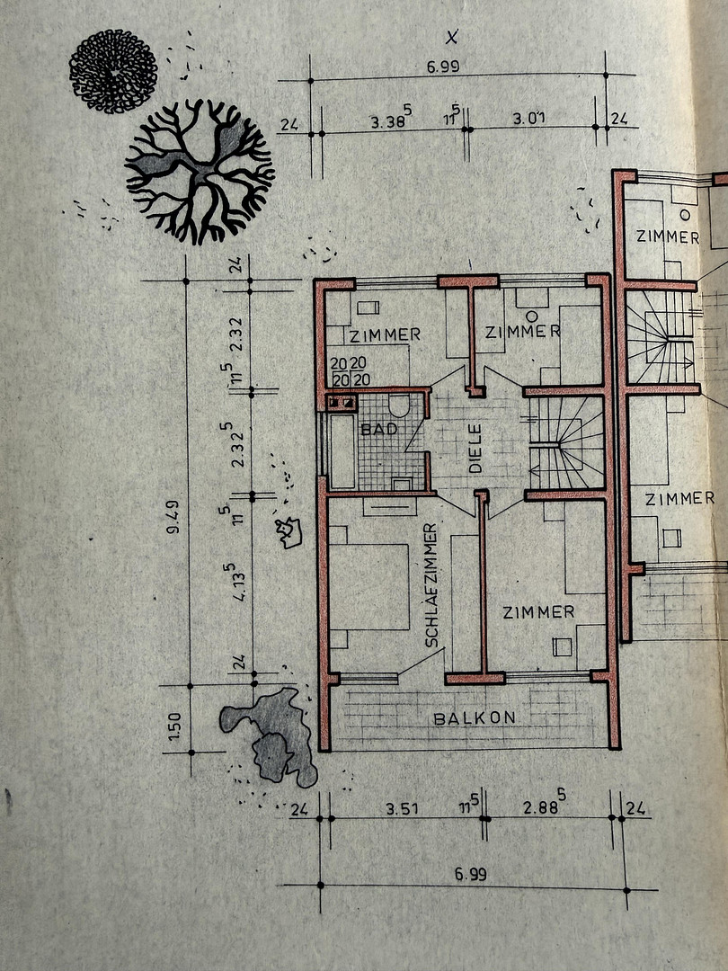 The second floor has four bedrooms (one of which has access to the large south-west-facing balcony) and a daylight bathroom that was renovated to a high standard in 2018. The second floor offers two further rooms and plenty of storage space in the sloping ceilings. There is also a further room here that can be converted into another bathroom thanks to the existing connections.