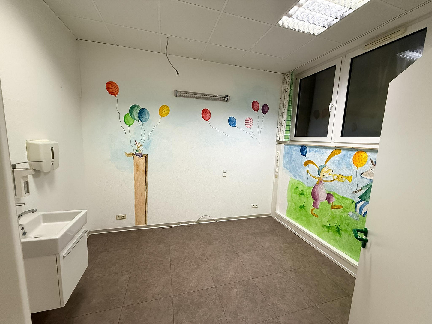 The commercial unit for sale is located on the first floor with barrier-free access and a separate entrance and has been used as a GP practice in recent years. Due to its good general condition, it can realistically continue to be used as a practice or therapy rooms with only minor renovation work.