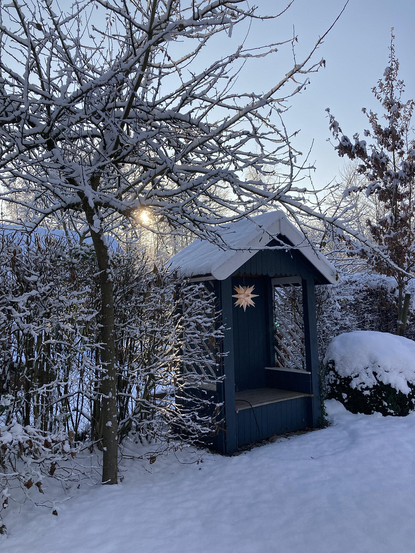 Enjoy relaxing hours in the almost 4,000 square meter large and completely ingrown private park-like garden with two terraces, two small groves, a small arbor and a shelter, which offers further idyllic overnight accommodation around the campfire.