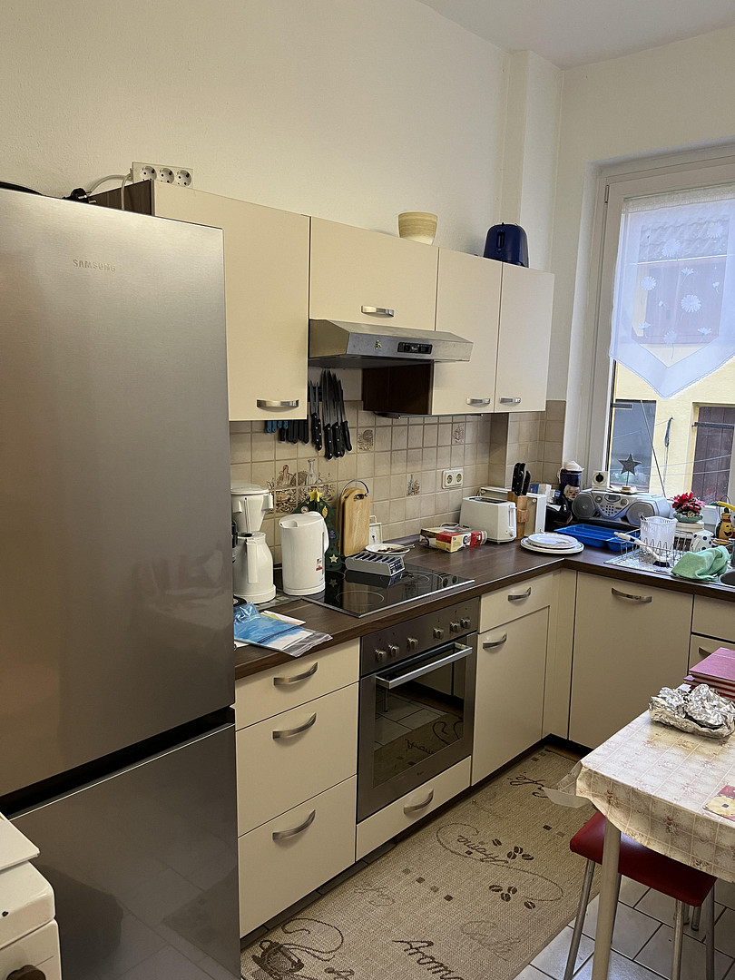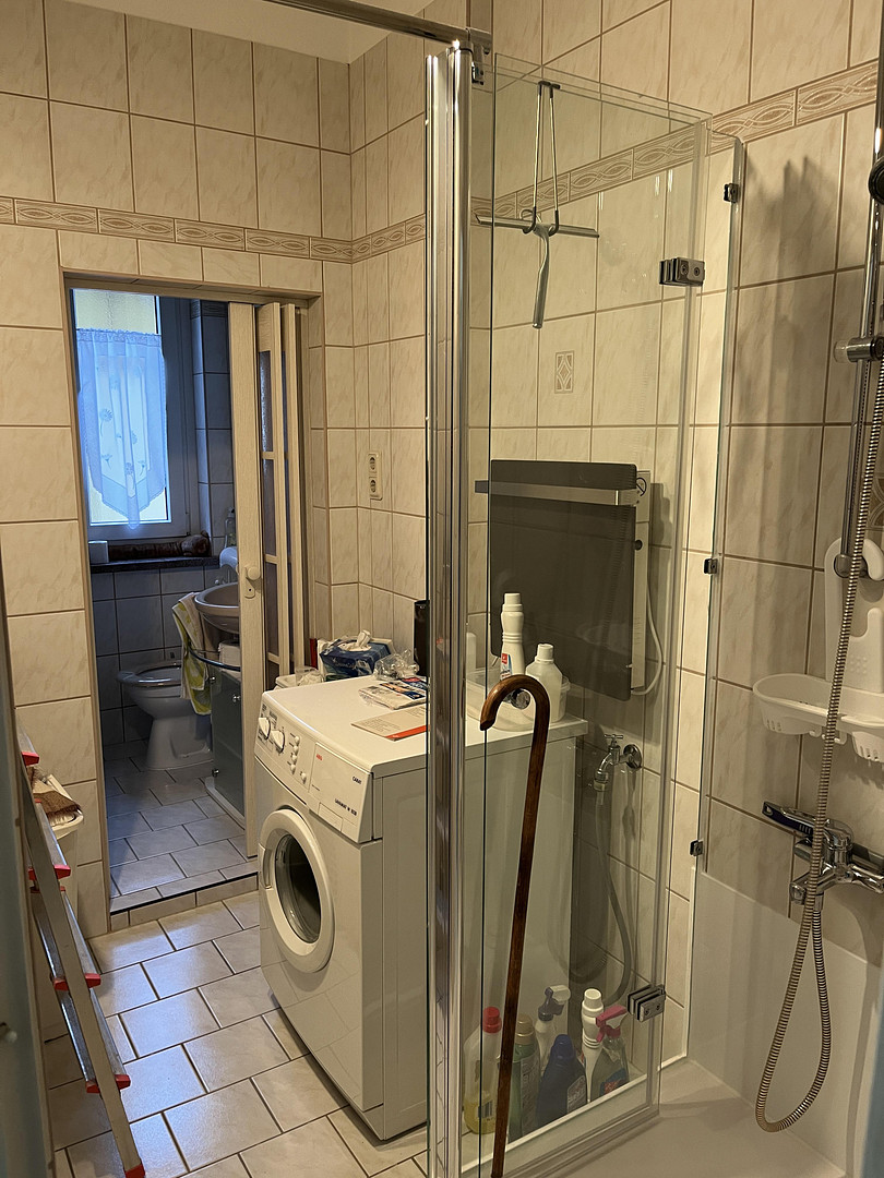 - Top floor, residential unit 3: single-glazed windows only, textile flooring in children's room, living room, bedroom and kitchen. WC and shower are located half a staircase below in the hallway. Gas boiler (year of construction 2022).