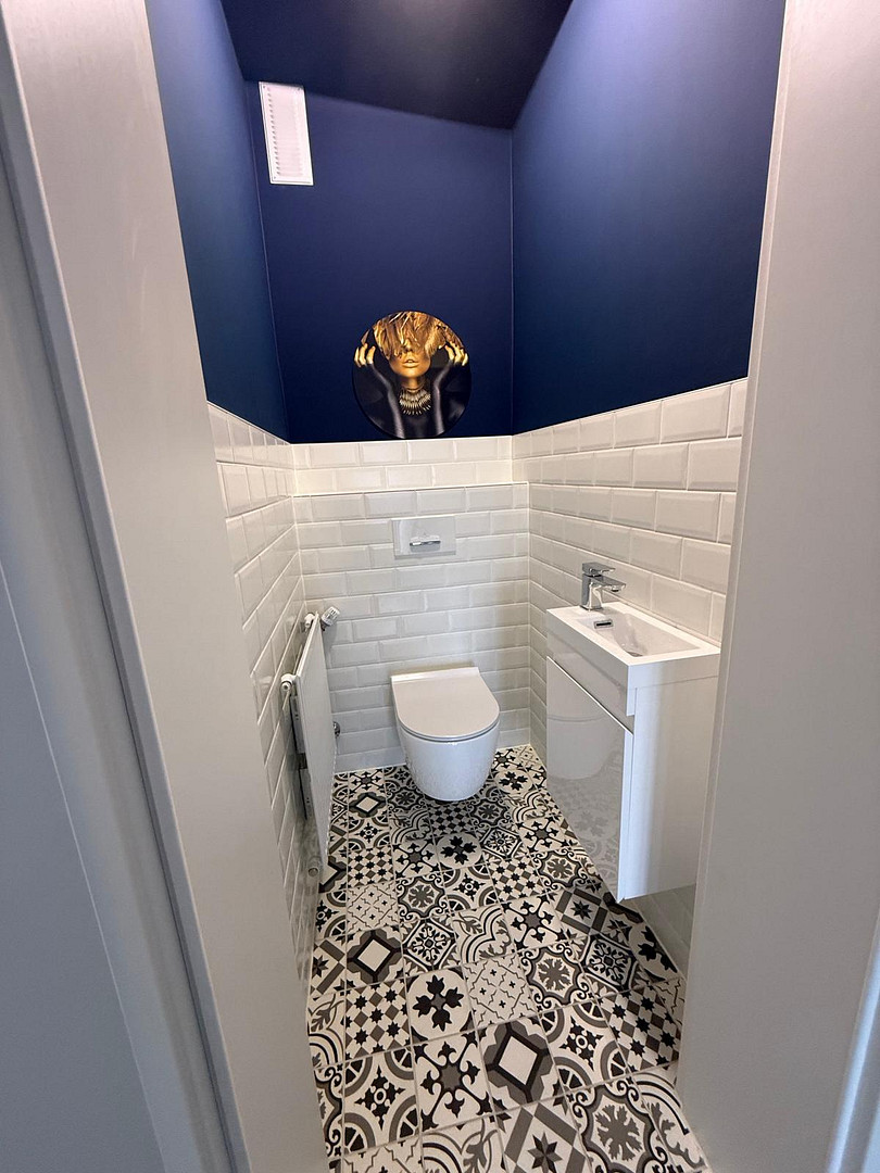 Bathroom with free-standing bath and shower. Second bathroom with 1.40m shower. Parquet flooring and 120 x 120 cm tiles. Additional free-standing stove.