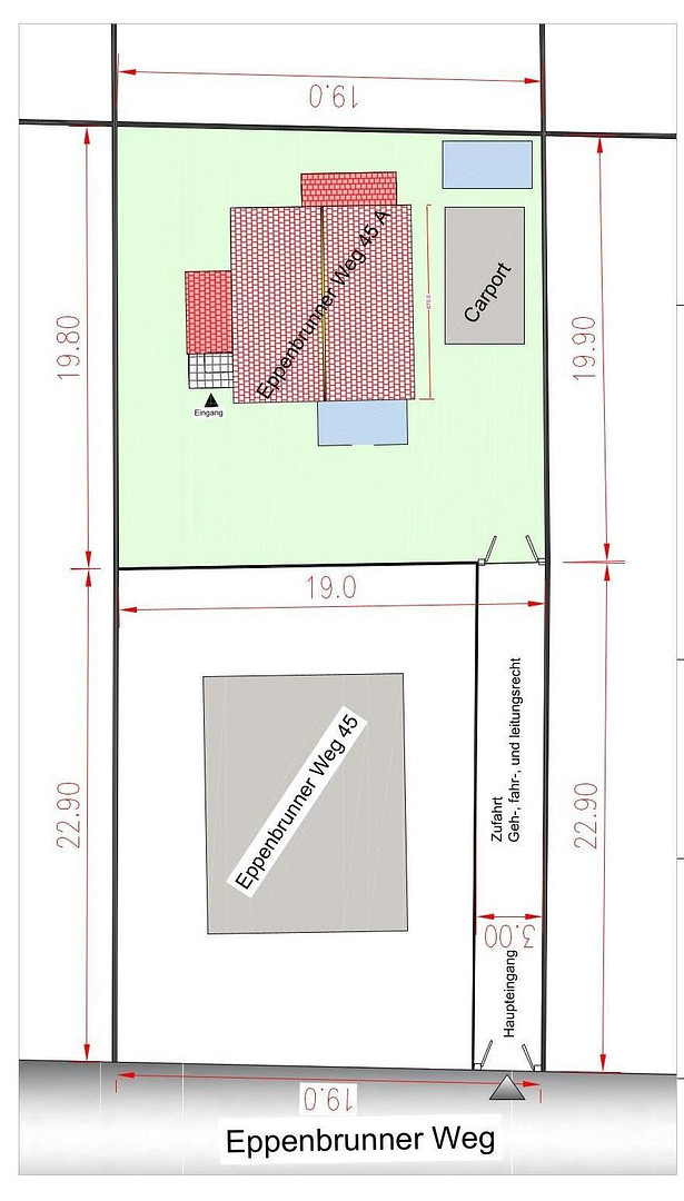 Eppenbrunner Weg, 12559 Berlin (Müggelheim)Exterior: On entering the property, the view opens onto a house for a small family with 2 children. In front of the house is a medium-sized garden with a shady tree. There are two parking spaces on the right, one of which is covered by a carport. There is a gazebo behind it. At the rear of the house is a tiled extension with two doors, ideal for bicycles or motorcycles. Access is via an approximately 20 meter long, fenced driveway from the street. A right to walk, drive and run is registered for this in the land register and land charge office.