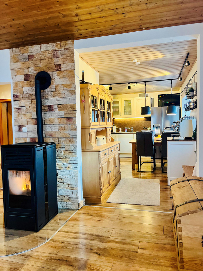 A separate pellet stove in the basement allows the entire basement area to be kept at a pleasant temperature - ideal for wellness, hobbies or as a warmer utility area in winter.