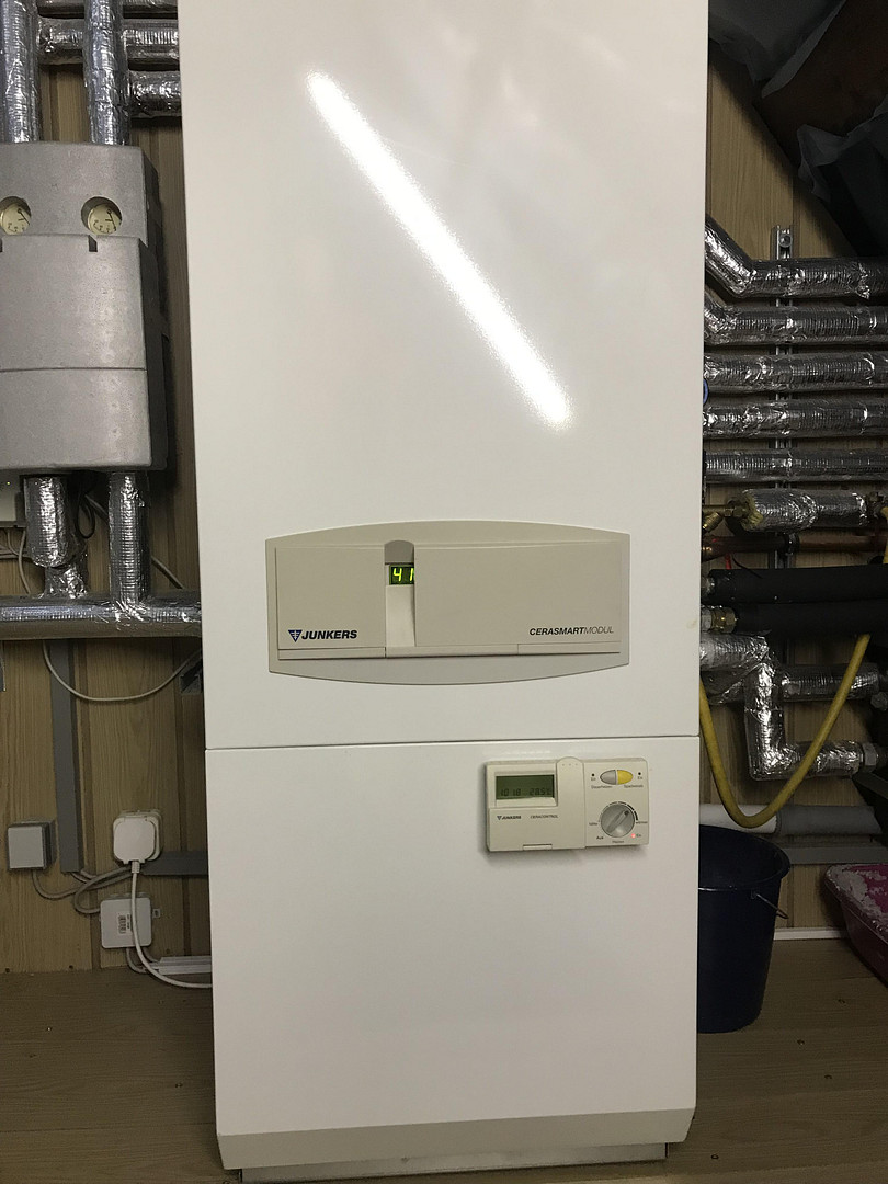 Heating is provided by a Junkers gas boiler, which is housed in the pointed roof.
