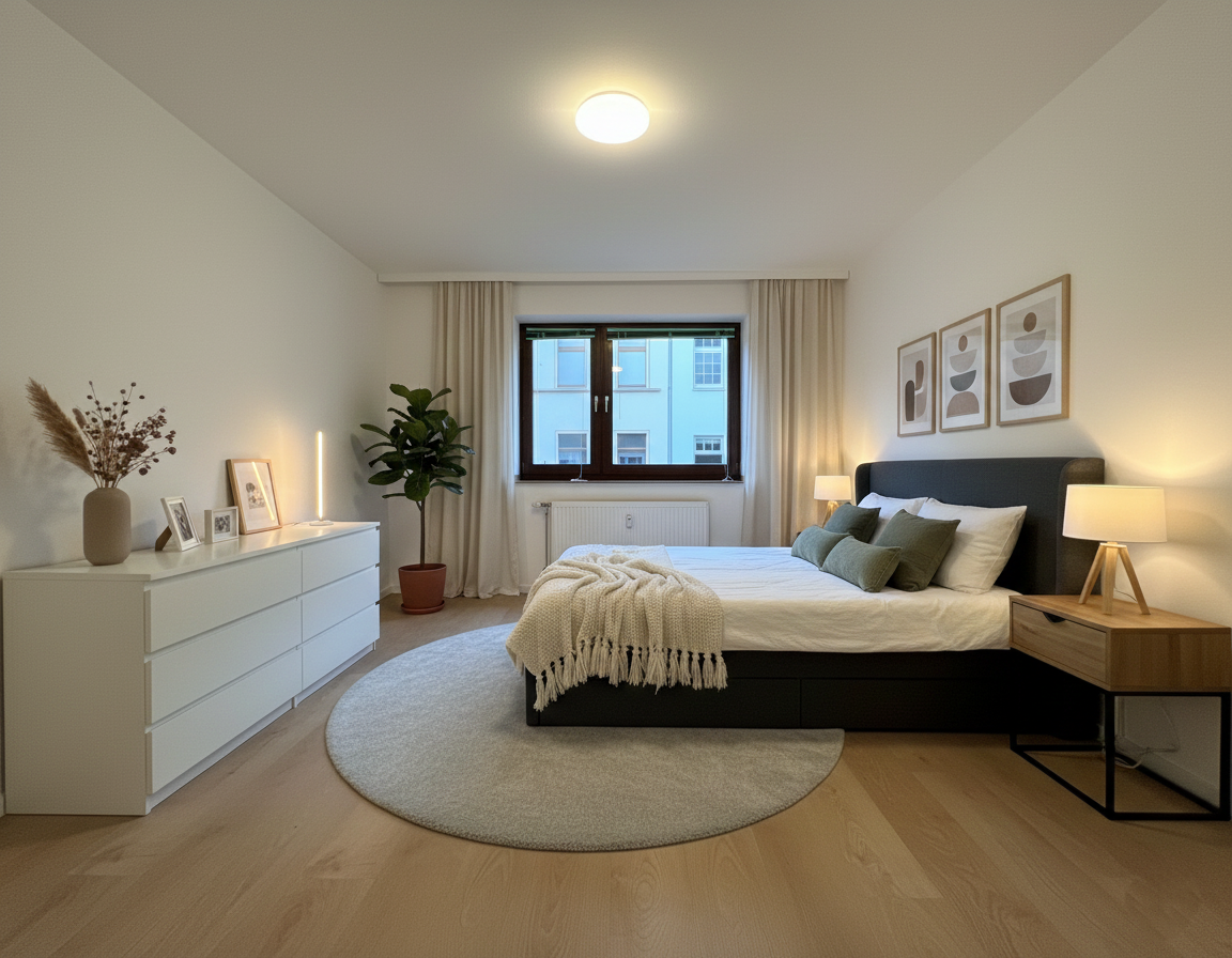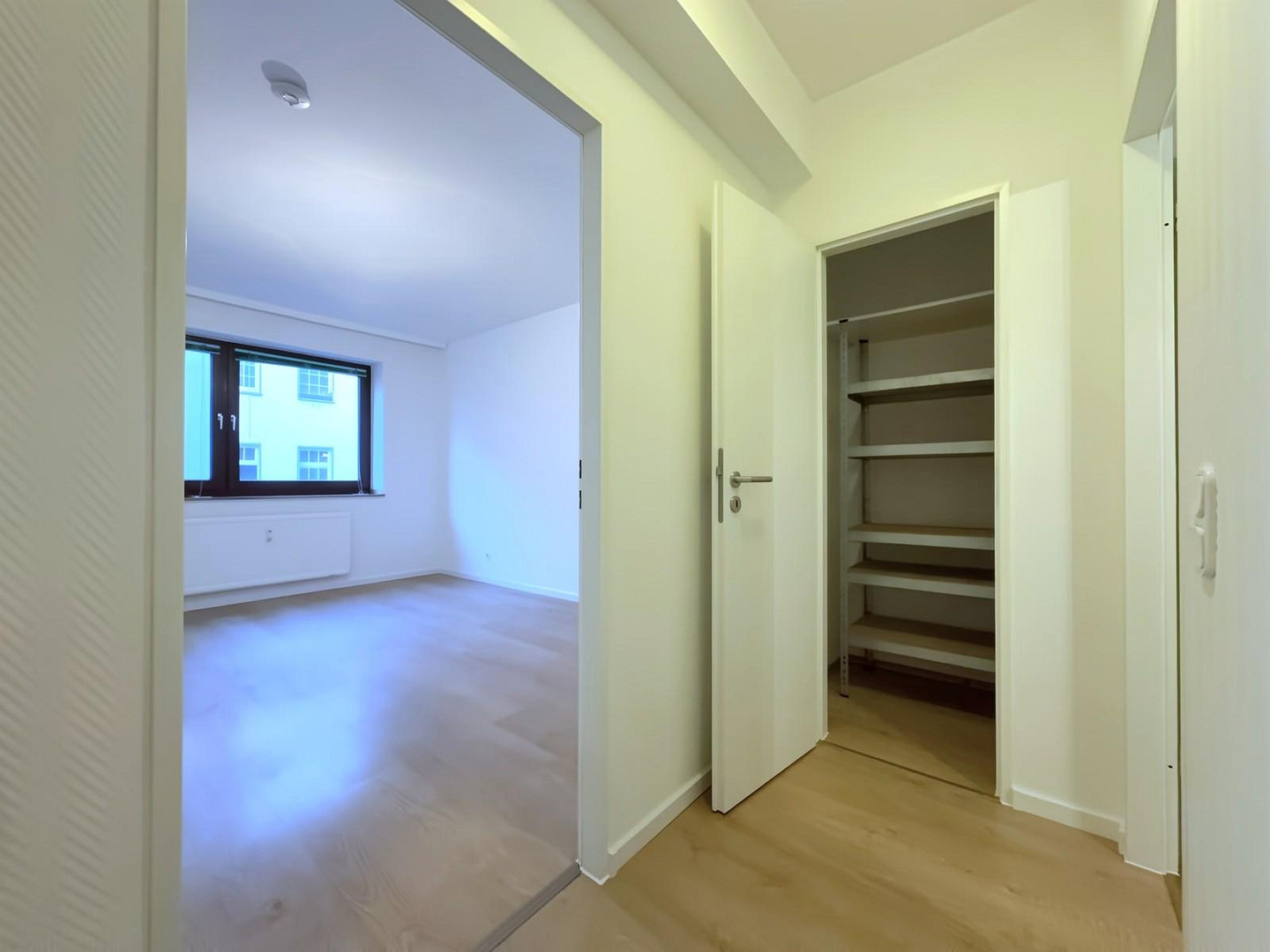 You will be greeted by a freshly renovated, approx. 101 m² apartment with a well thought-out floor plan that ensures an optimal room layout. Via the spacious hallway, which offers additional valuable storage space with a separate storeroom, you will find the two bedrooms to the left.