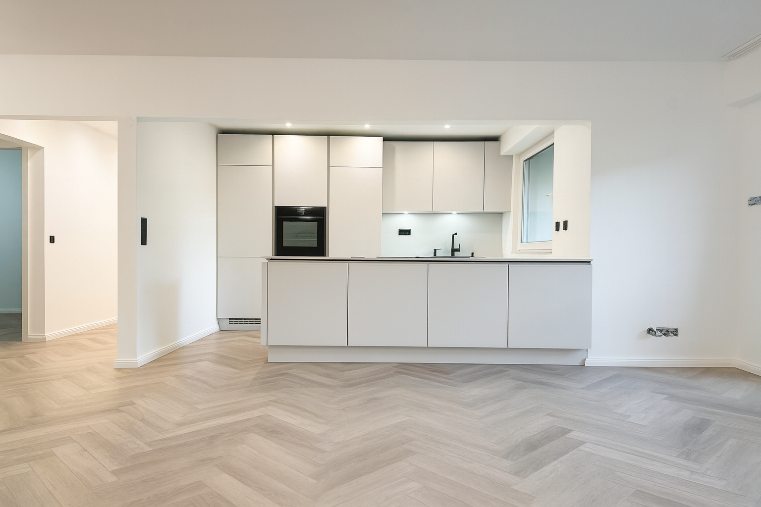 41462 Neuss – Nordrhein-WestfalenThis high-quality renovated 4-room apartment offers a spacious 36 m² living/dining area with an open Nobilia kitchen and access to the loggia and private garden (special right of use). The apartment was completely modernized in 2024 and has a new daylight bathroom, two bedrooms, a study, a utility room and a storage room.