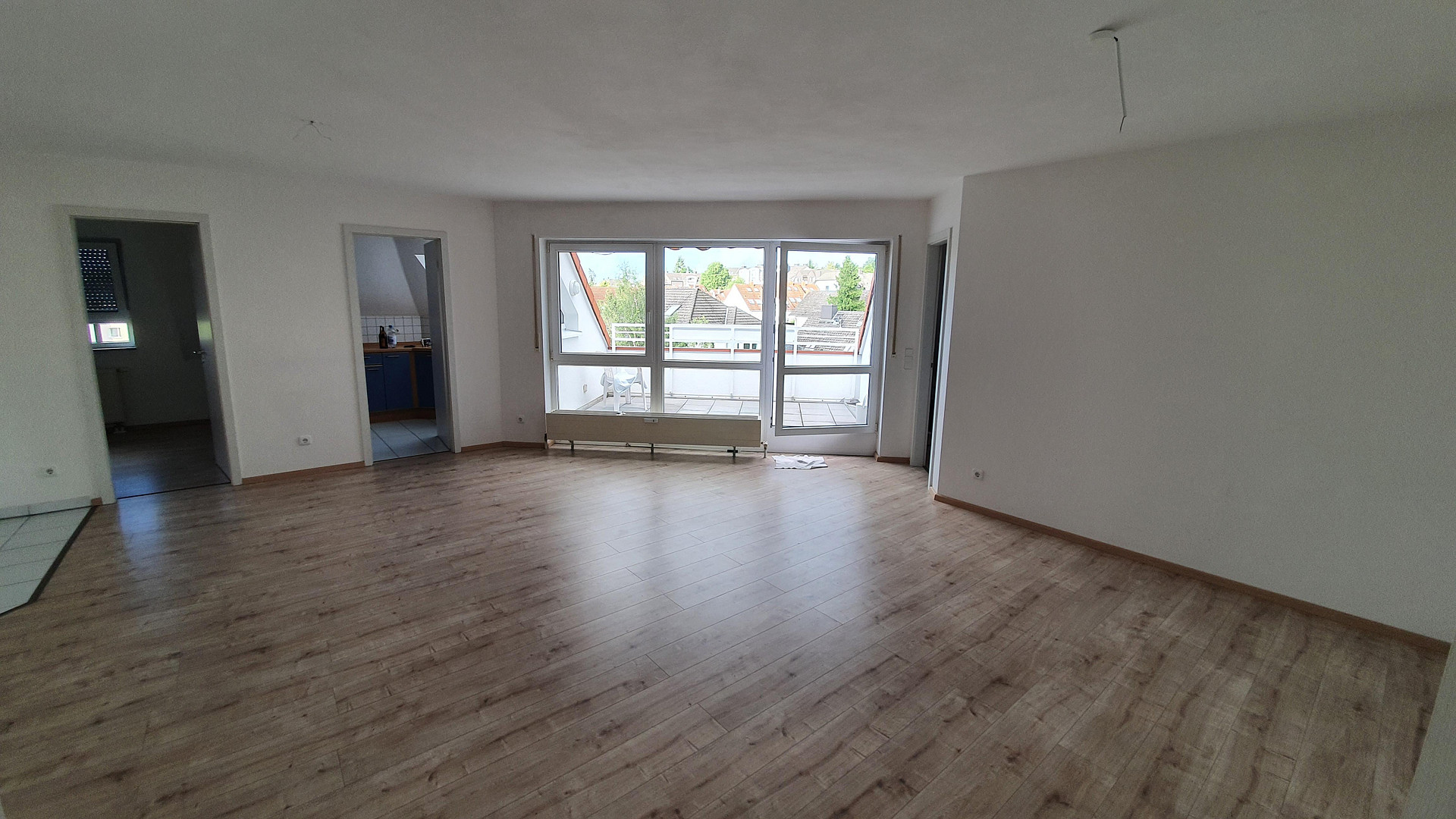 Am Hangelstein 29, 65812 Bad Soden am Taunus (Neuenhain) – HessenThis beautiful 3-room top floor apartment with a roof terrace that cannot be seen is located in an apartment building in Bad Soden/Neuenhain. It is a "book apartment" with an open fireplace. The apartment has approx. 80 m² (floor space 90 m²), is very bright and absolutely quiet. The daylight bathroom has a shower and bathtub, the kitchen has a fitted kitchen with all electrical appliances (including dishwasher) and from the roof terrace you have a beautiful view of a nature reserve. Bathroom, hallway and kitchen are modernly tiled, the remaining rooms have laminate flooring. Layout: living room 36 m², bedroom 15 m², office 9 m², kitchen 6 m², bathroom 6 m², hallway 5 m², roof terrace 10 m².